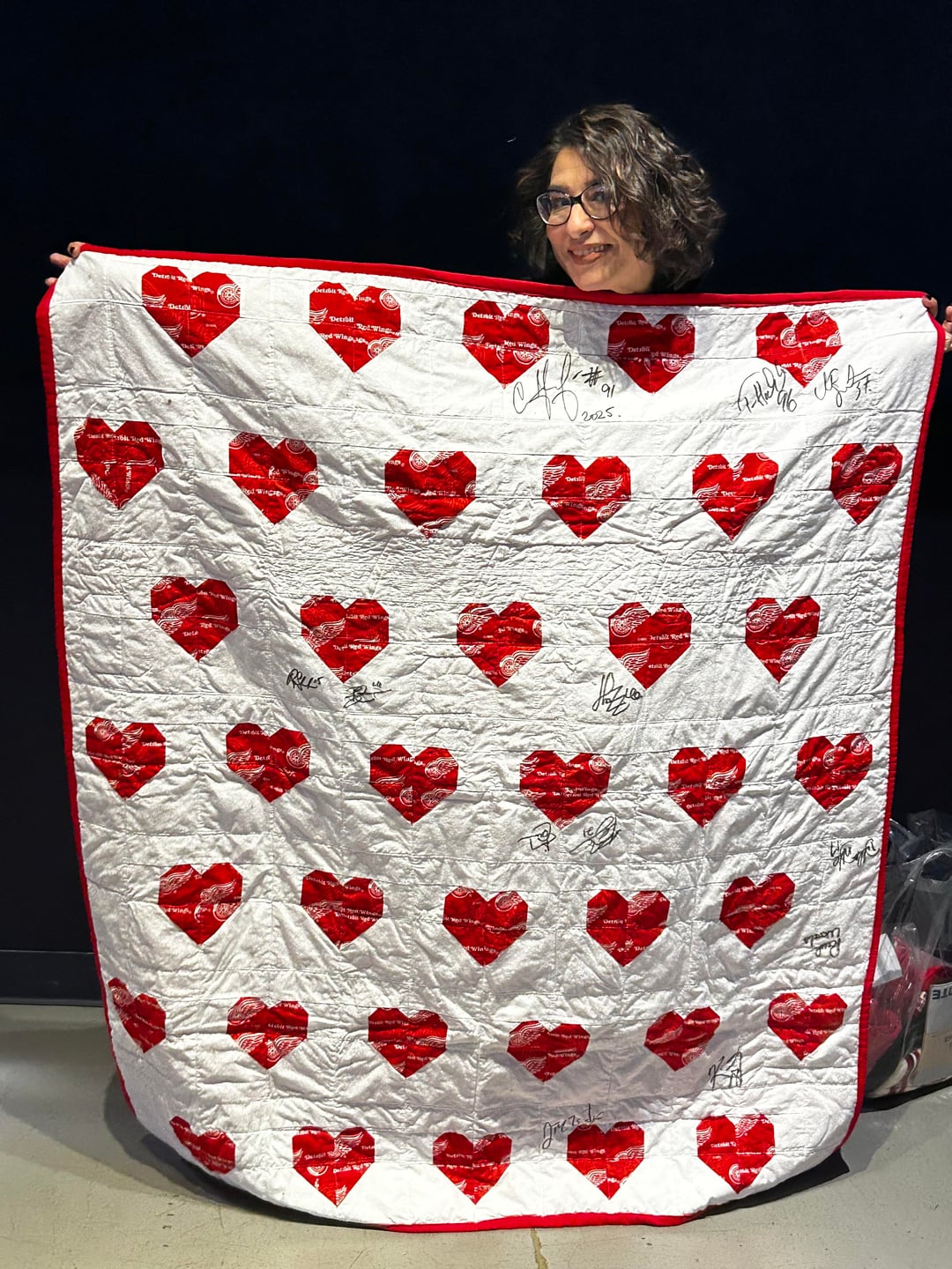 A lot of people wanted to see the finished quilt. Here it is with bonus photos of it being signed today. 21 comments It’s absolutely beautiful! Omg that is so cool! Absolutely LOVE it! This is fantastic. I hope the players got a kick out of it. That goes hard Amazing! How were their reactions? It’s gorgeous. Sergie. Konstantinov was a machine. Respect! Fucking love this so much. Sooooo damn awesome! Way to go! Vladdy! Holy shit I havent seen Gilchrist in AGES Very cool Magnificent! Who are wearing #’s 12 and 15 It turned out so great! So cool! It’s beautiful! Awesome that you were able to get it signed by so many people, hope the players enjoyed it! Very, very awesome!! Super cool, great job! Great job! This is awesome!! I wonder why Fedorov signed it and also added the current year below? Never seen that before. Leave a ReplyYou must be logged in to post a comment.