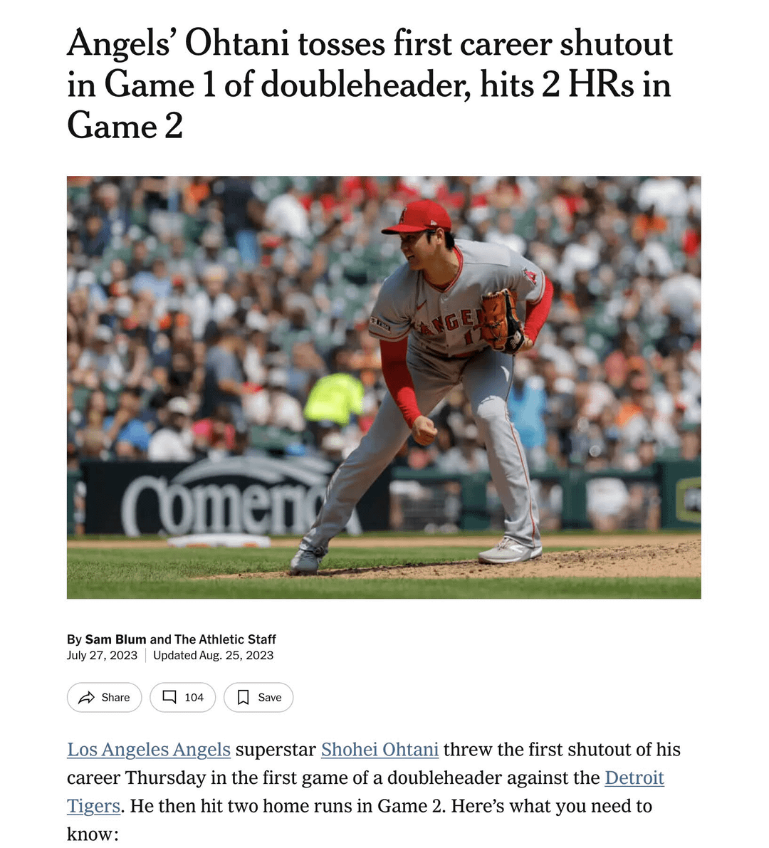 That’s honestly incredible. That game felt like one of those “you’ll remember where you were” Ohtani moments — dude threw a one-hit shutout and then homered in the second game of the doubleheader like it was nothing. Owning an actual ball from that day is insane, man. That’s a piece of baseball history right there.