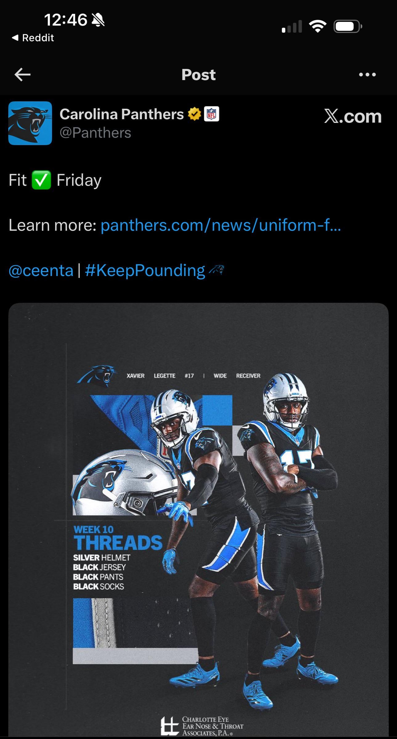 [Panthers] Sundays Uni’s 9 comments Love it Would like silver pants with silver helmets We need a all white uni’s with some white pants and helmets I love the silver helmets. Classic. Did they change the pant stripe again? Why does it cut in at a 90° angle? They changed the shoulder stripe with no fanfare too. I mean, I like it. But they should announce it. Please tell me we’re not wearing shorts! They just rolled them up to show off the socks right? Need to see T Mac in these. Please play A classic look. I wish they would just own blue and black as the team colors so no other teams(Lions) use them Leave a ReplyYou must be logged in to post a comment.