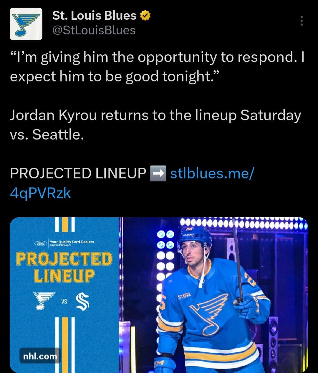 🏒💙💛💙🏒 I have been very hard on Kyroy for years now. I have said he can’t make or catch a pass. I have spoke about him not hitting or taking a hit. Etc… etc… this year I have been like wow… he just hit a guy or didn’t stand around. He got into the action. So I have felt better about him this year. The way he handled this game off was more mature too. I am not bashing the guy when I can actually see the effort.