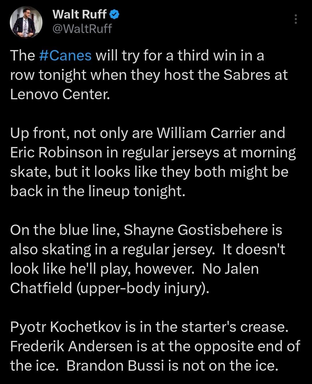 Carrier and Robinson poised to return tonight, Gostisbehere getting close