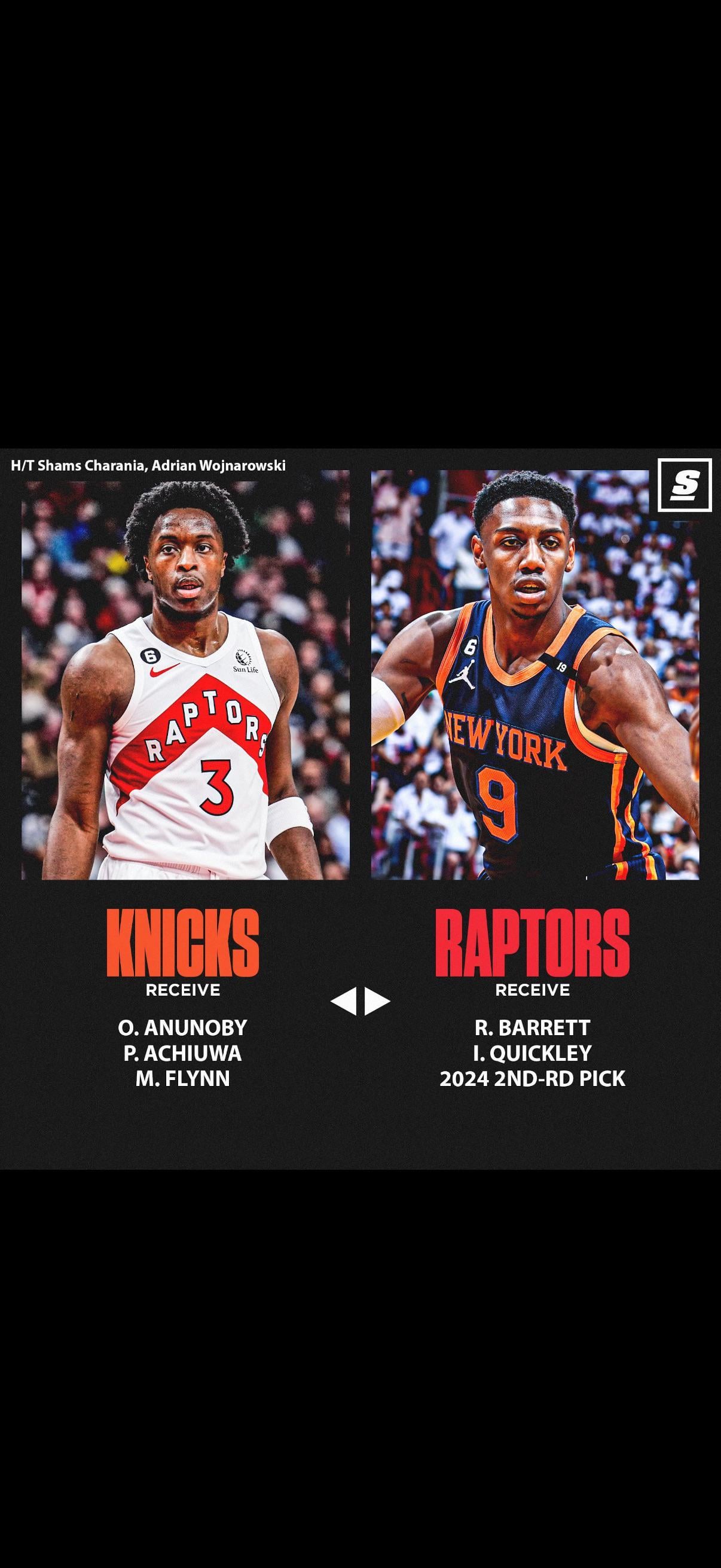 Not really imo. Barrett is playing the best ball of his life in Toronto, and Quickley is still good when he’s healthy. Both teams did well, and I still wish those two the best, Quickley especially.