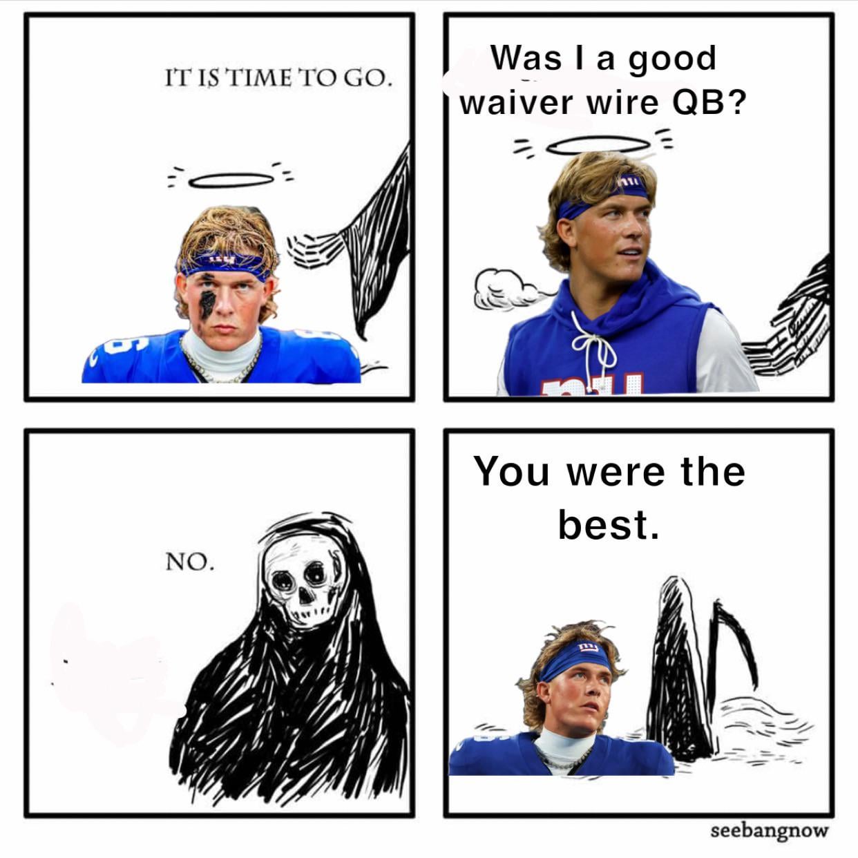 1. Maaaaan I slept on QBs in my draft and ended up grabbing Geno Smith and Cam Ward as a backup.