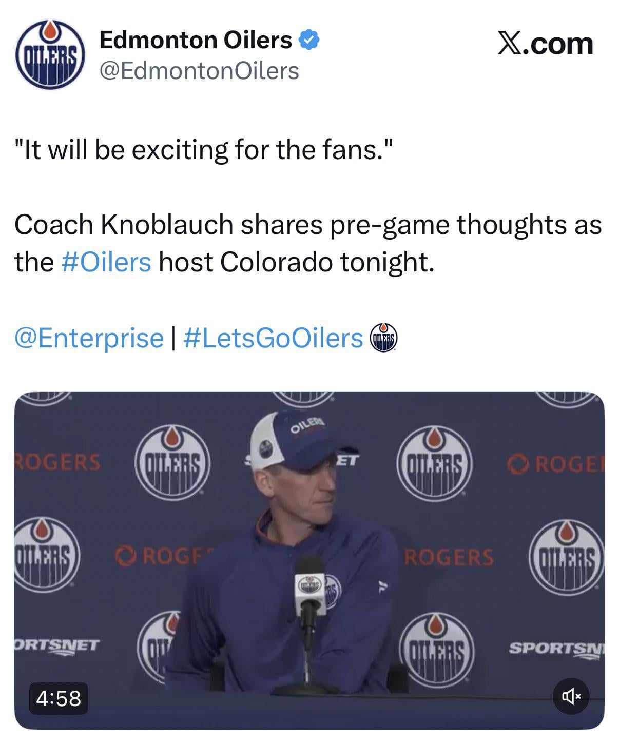 [Oilers] “It will be exciting for the fans” They just lost 9-1 to Colorado.