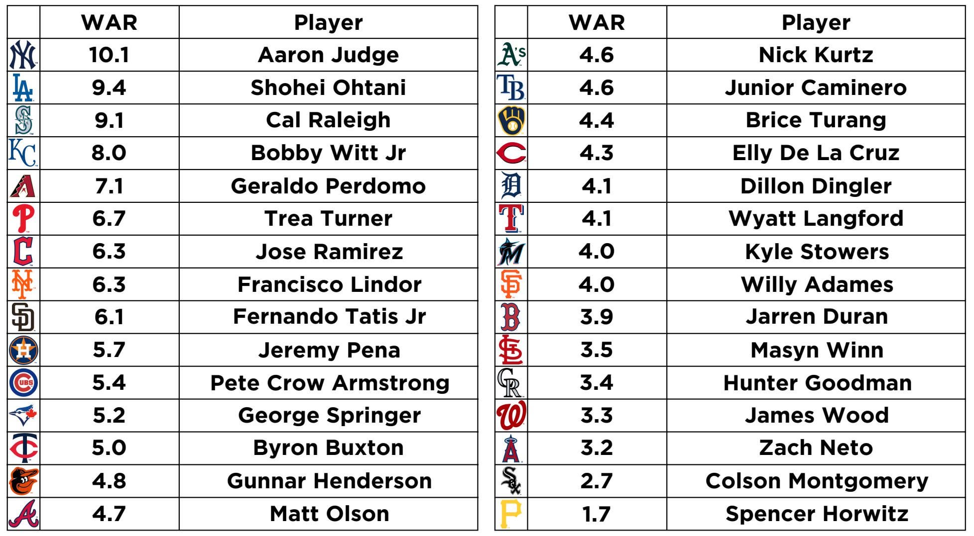 I’m surprised it’s not Soto for the Mets, though he’s close at 5.8