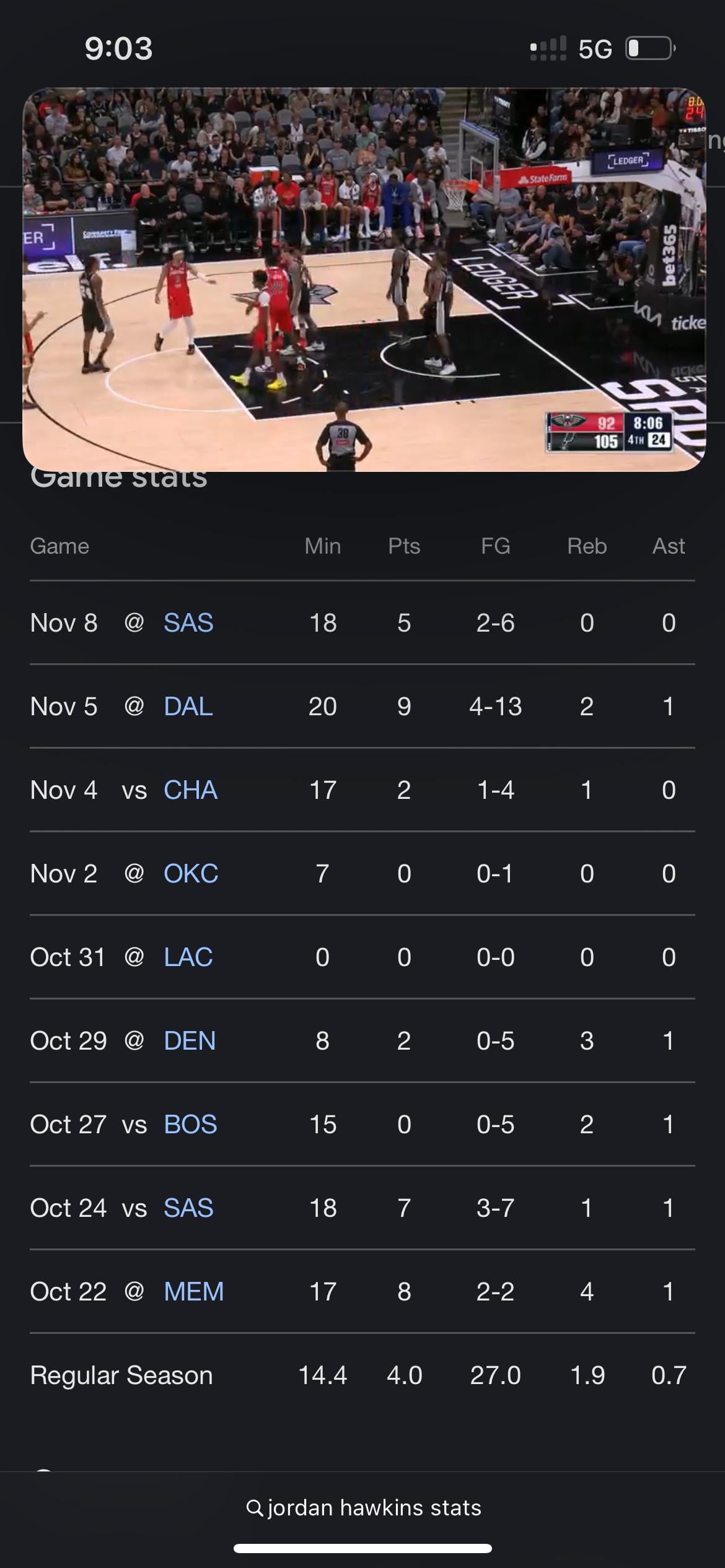 I would take Brandon Boston without any arms, eyes, or legs over having to see Jordan Hawkins play a single minute more of basketball. Dude is shooting 27% on the season and is giving up a consistent 15-20 points a night single handedly by either committing to the worst fucking double teams in the history of basketball or just straight up getting cooked. One of the most unwilling passers I’ve ever seen considering how terrible he’s been on offense. Doesn’t do any of the extra dirty stuff like go for rebounds, I genuinely saw him run up to the free throw line multiple times tonight to stand there and watch the rim while guys were fighting on the inside for a board. He is bound for the Guangdong Tigers when his contract is up and he will undoubtedly get cooked by some Chinese dude too
