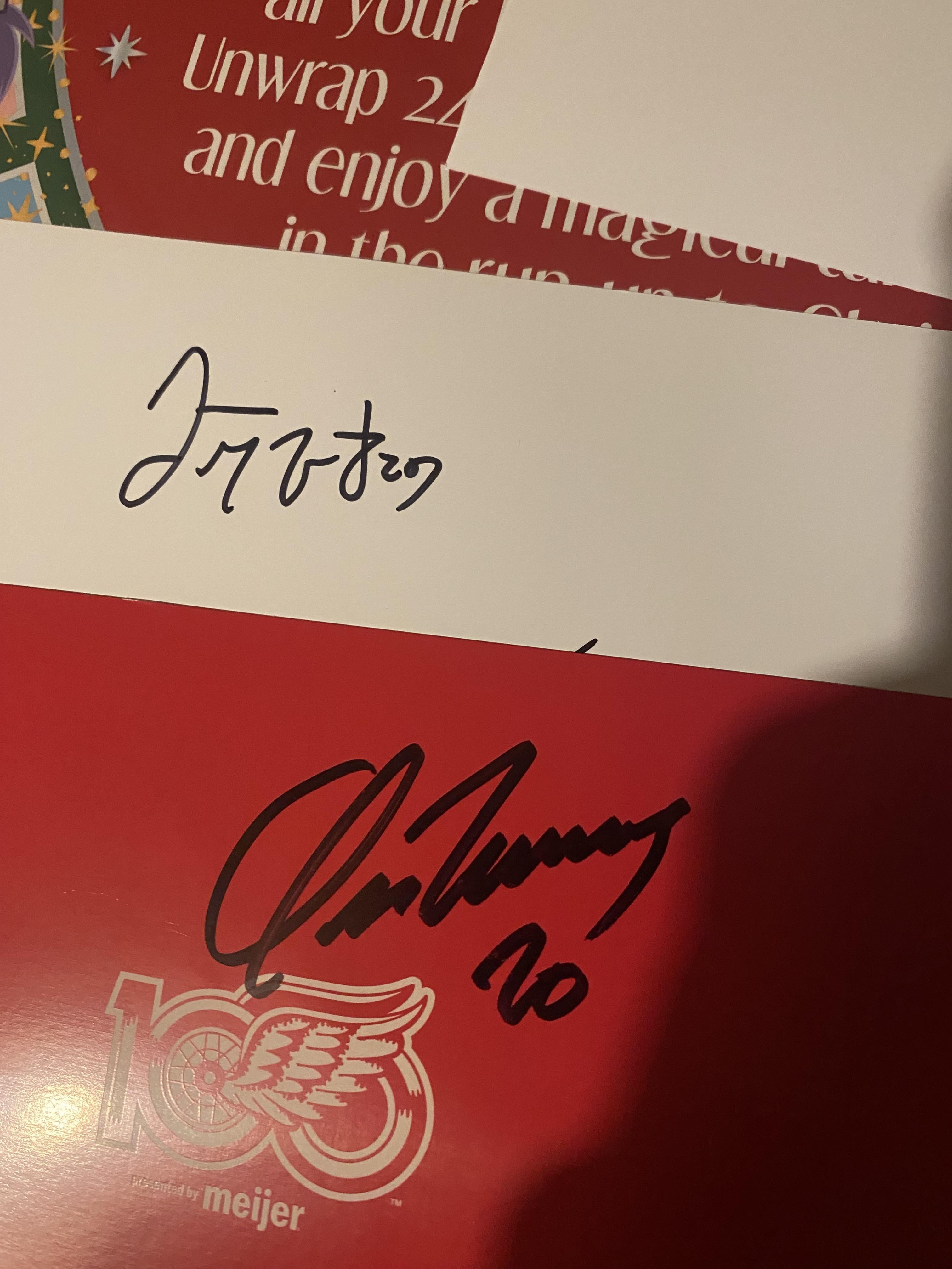 Went to the fan fest today instead of getting to meet anyone for autos we got these plus three becasue the cut the line off🤦♂️🤦♂️. Could use some help identifying please and thank you 5 comments Top or bottom one? Aljo? Darren McCarty and Aaron Downey Robert Lang? Top number is 27/29 bottom number looks to be 20 Leave a ReplyYou must be logged in to post a comment.