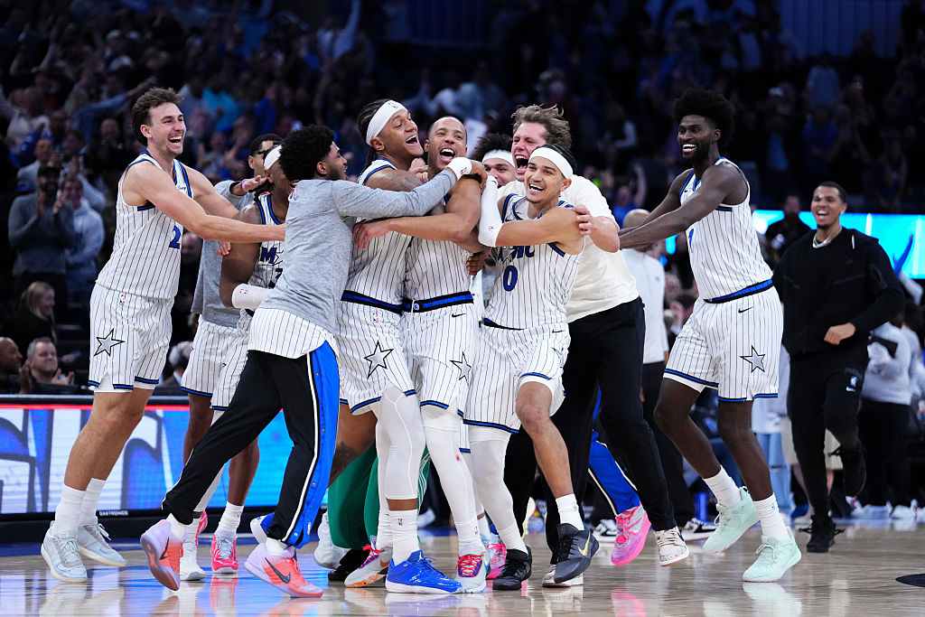 Desmond Bane and the Magic celebrated after he hit a game-winning three to defeat the Trail Blazers.