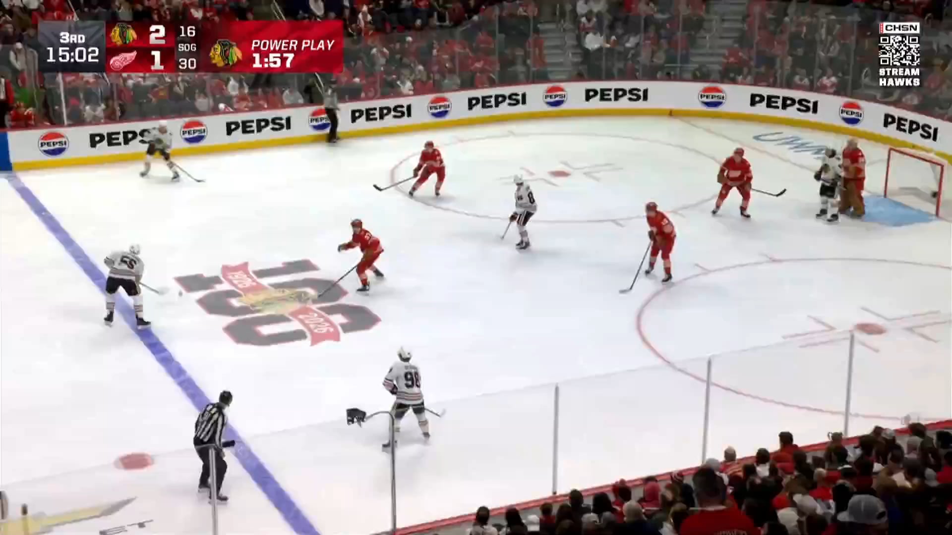 Tyler Bertuzzi scores on the power play for his 6th goal in his last SEVEN periods. Chicago is 3-for-3 on the man advantage today.
