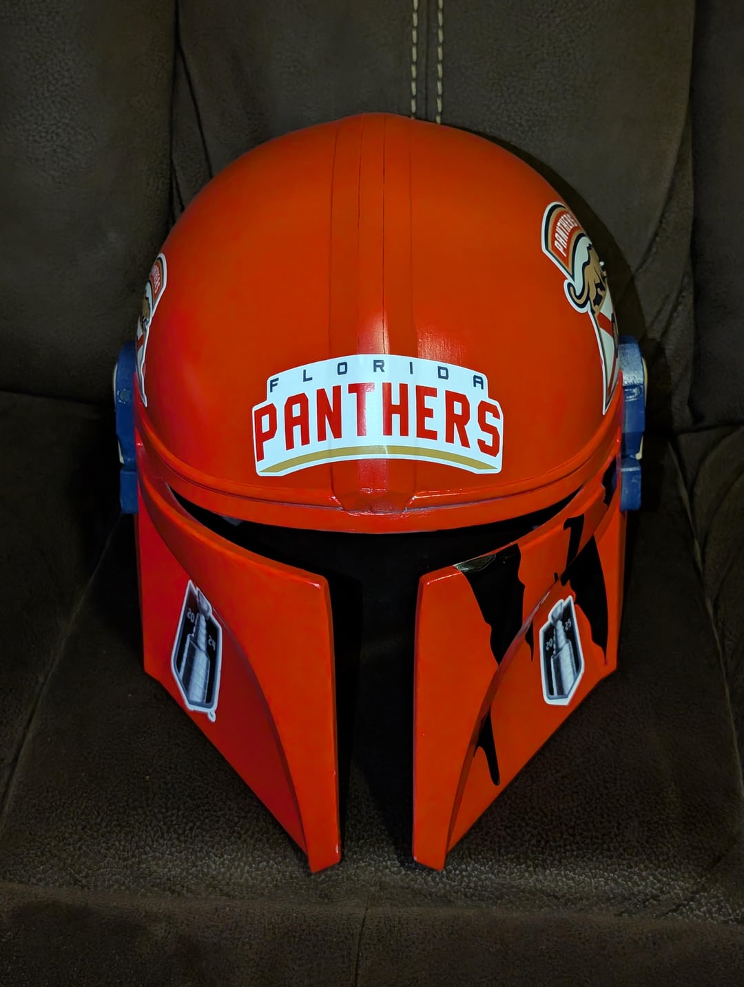 Had the idea a couple of weeks ago to make a panthers mandalorian helmet. Original goal was to paint the logos and other things on the helmet. But we are coming down south next weekend and decided to come to the game. So I threw some stickers on it so I can wear it.