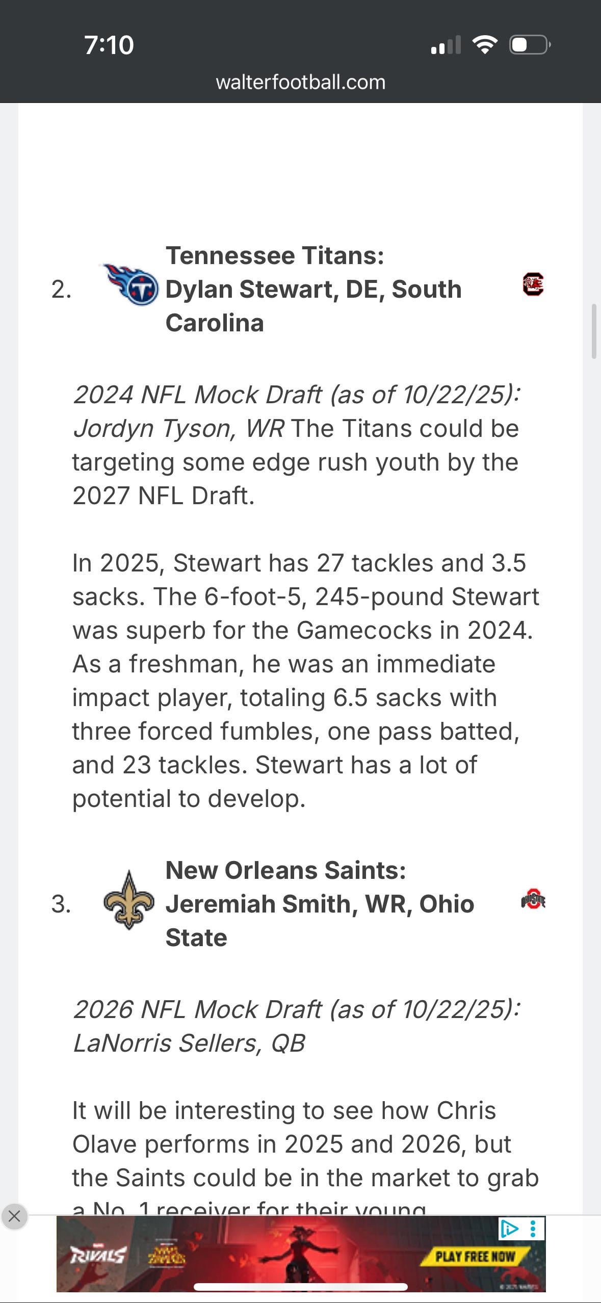 3. Man I used to love Walter Football. I remember the first mock draft I read on his website was the day before the 2015 draft and I was stoked to see us projected to take Mariota. I don’t know if his content has fallen off a cliff or if I’ve just learned what good content looks like- maybe both- but his stuff is unreadable now