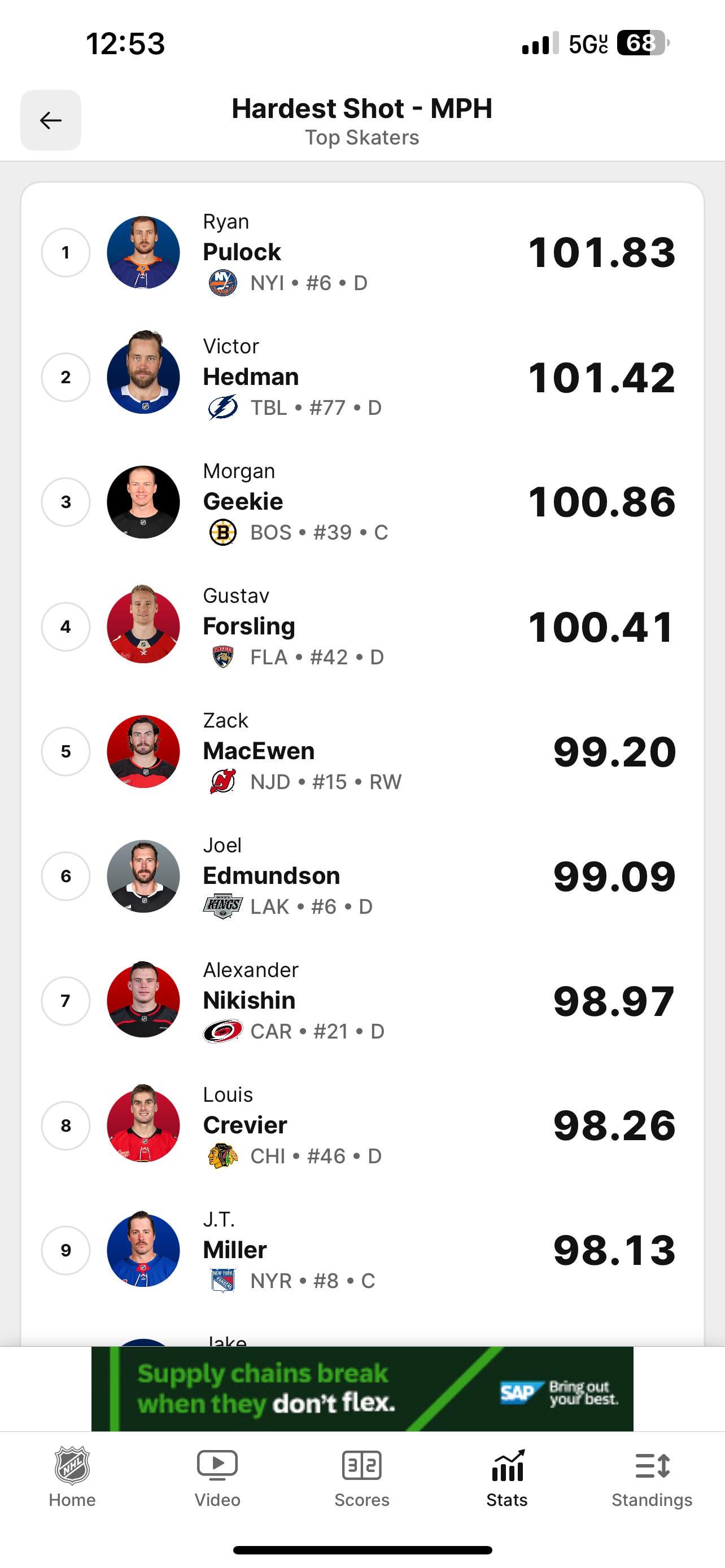 But I think to put some words into your mouth, the slap shot speed does not matter at all. You have to get it on net for it to even matter, and he rarely does that. I mean really….he probably has 2-3 slapshot goals per season, if that. Whatever.