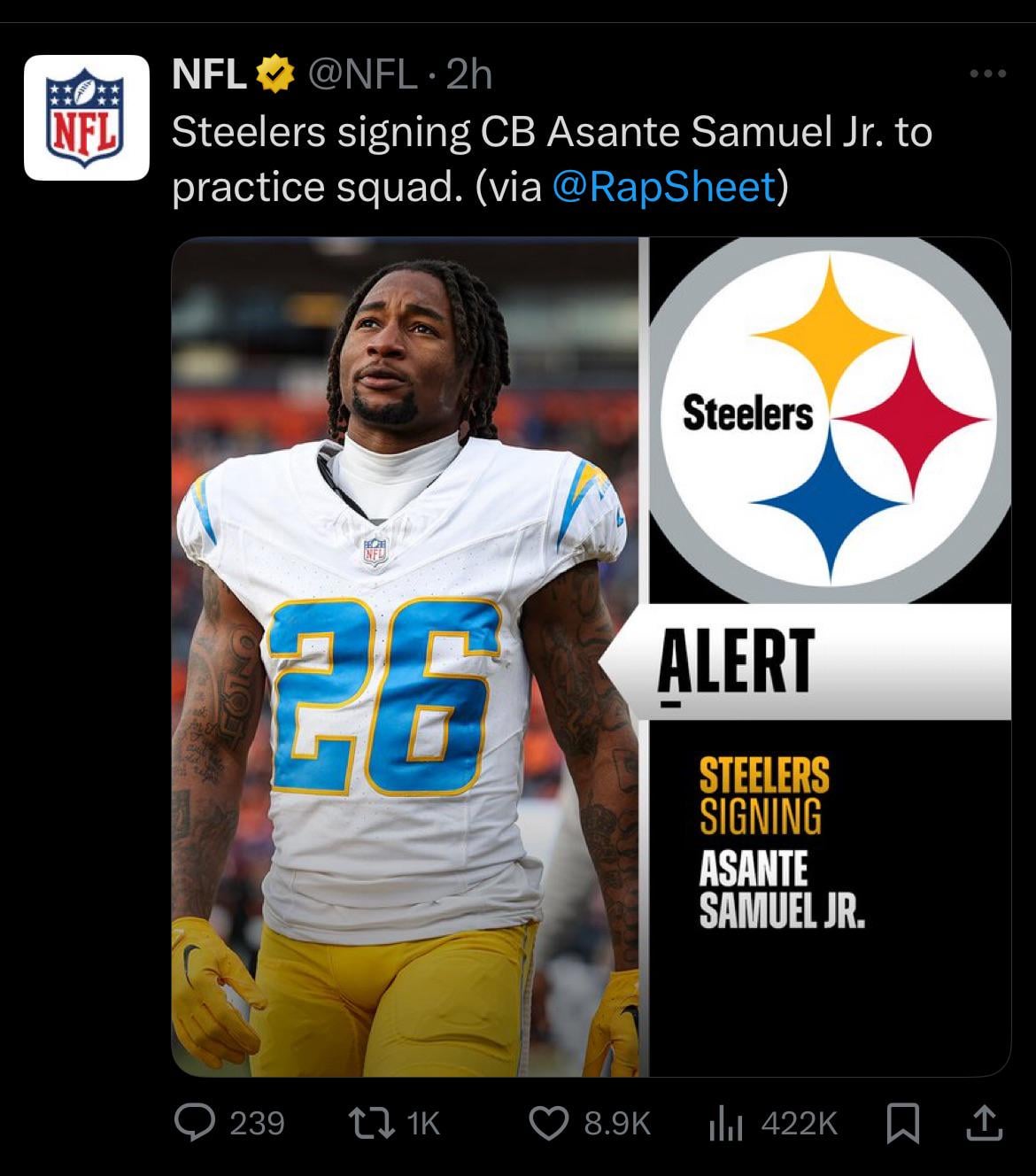 Asante Samuel is coming off a spinal fusion and he got signed to their practice squad. I’m as frustrated as anyone but calling this a “big signing” is funny