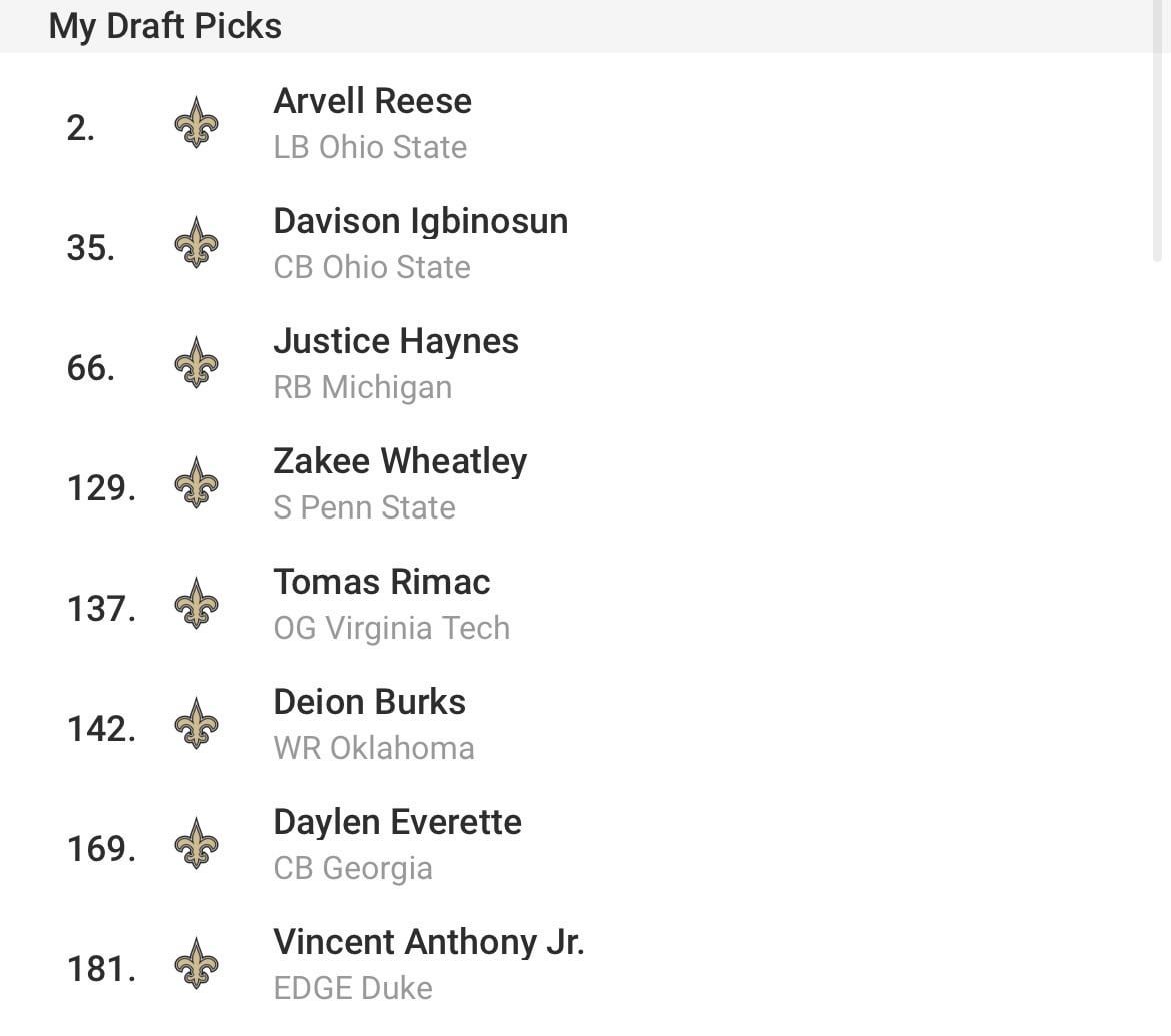 Mostly I would want the Saints to focus on a draft mostly focused on defense to help their QB on the other side while sprinkling in some playmakers for the QB.