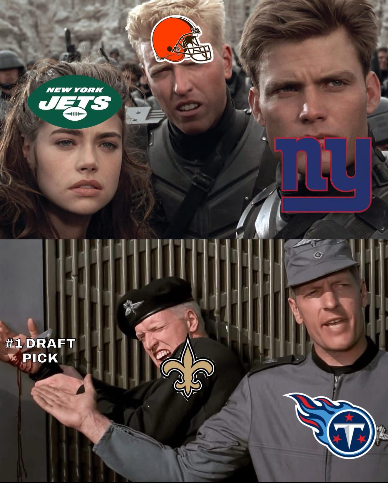 Mock Drafts Get Wrecked 3 comments I like the Titans, and I like Starship Troopers, but someone’s gonna have to explain this to me. Don’t worry, we’ll give it back… for a price I’m doing my part Leave a ReplyYou must be logged in to post a comment.