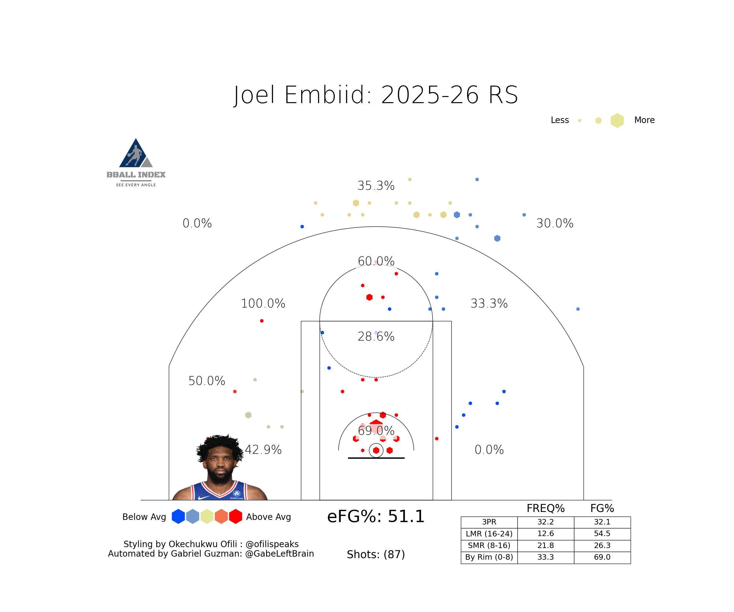 Embiid’s shot chart so far this season: