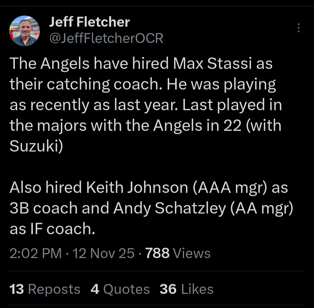 This a great hire. Loved Stassi as a catcher and glad he came back to work with the team.