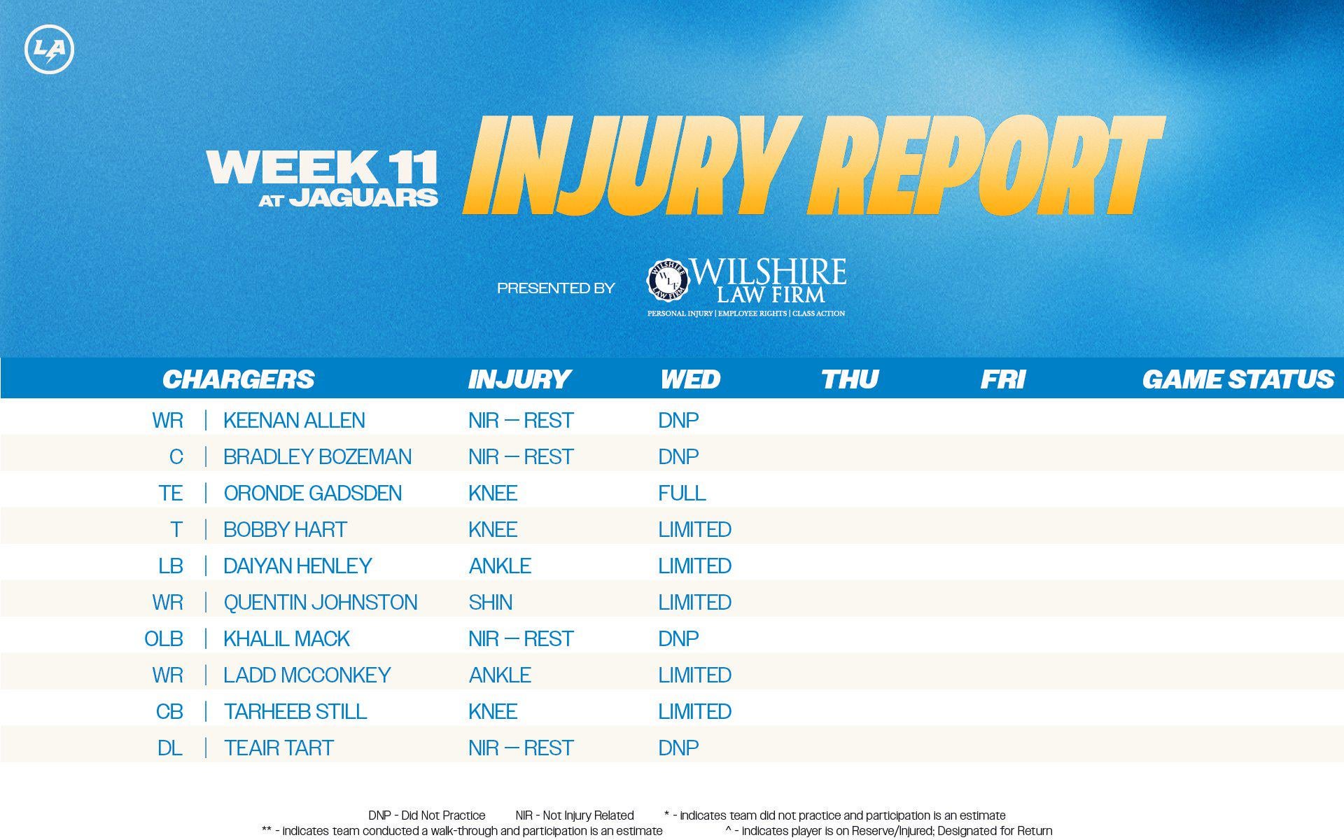 Good looking injury report. A win and a bye would be massive going into a tough stretch of the schedule.
