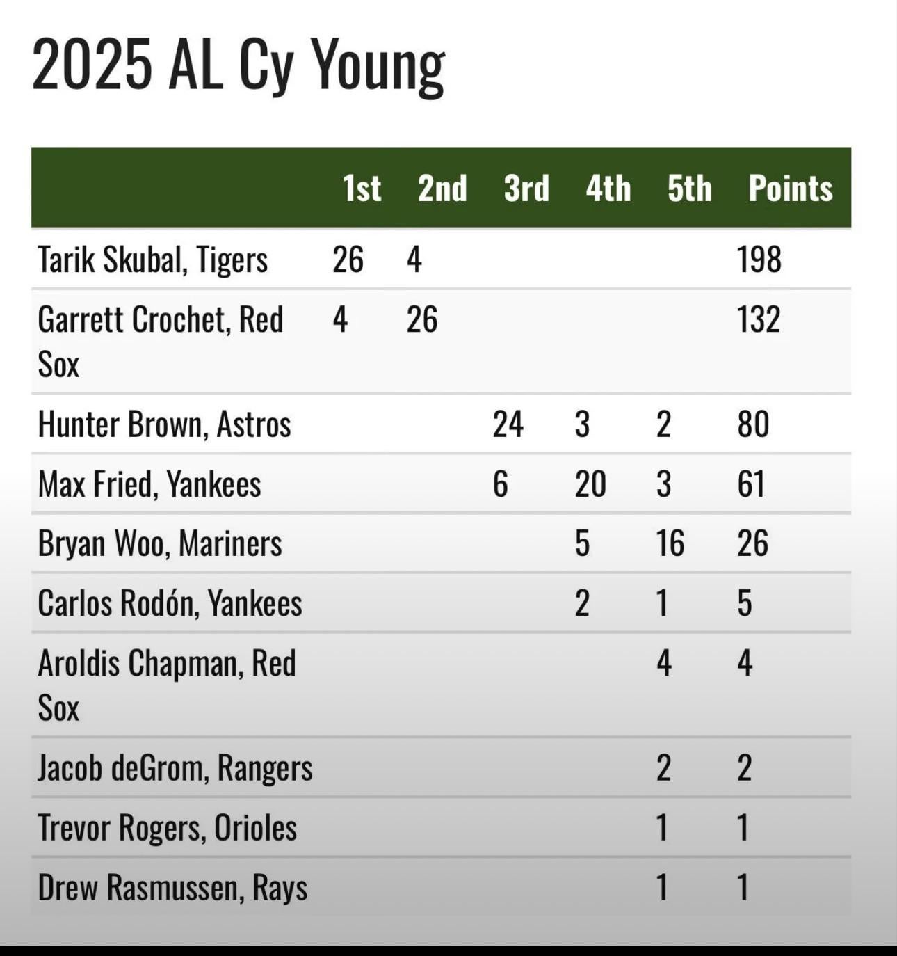 Shoutout Drew Rasmussen for getting cy young votes! 3 comments Vote, not votes unfortunately getting Cy Young vote* *vote. CY Young vote. 😆 Leave a ReplyYou must be logged in to post a comment.