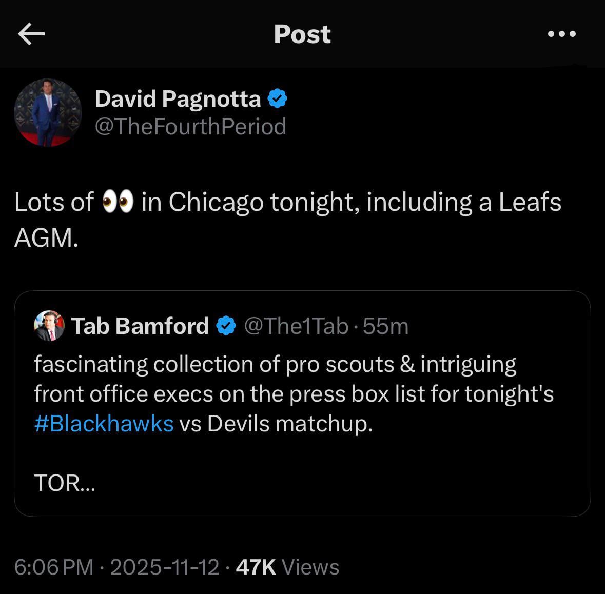 [Pagnotta] Lots of 👀 in Chicago tonight, including a Leafs AGM.