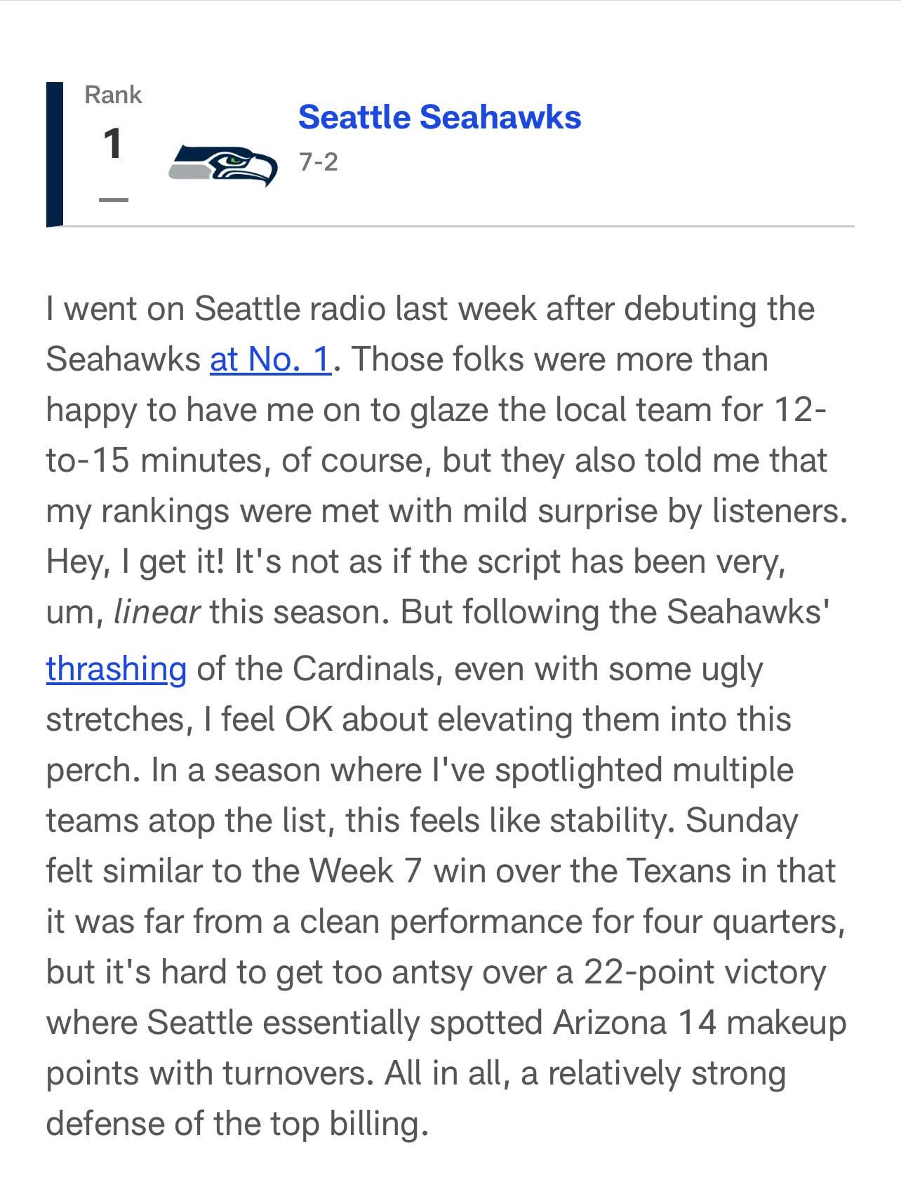 I’ll be honest, I don’t really understand why everyone is picking us as #1 over the Rams. It would make more sense if it was split down the middle with some media outlets reporting Rams as #1. This weekend will decide who is the better team.