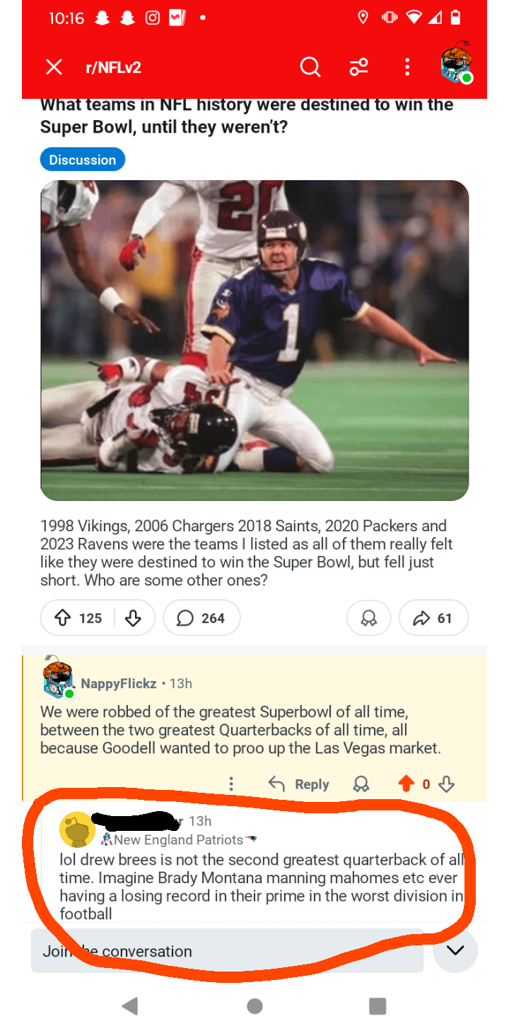 He is right. Brees is not the second best of all time. He is the best. Give him Brady’s teams and no one would argue. Defense matters in rings. No QB can do it alone.
