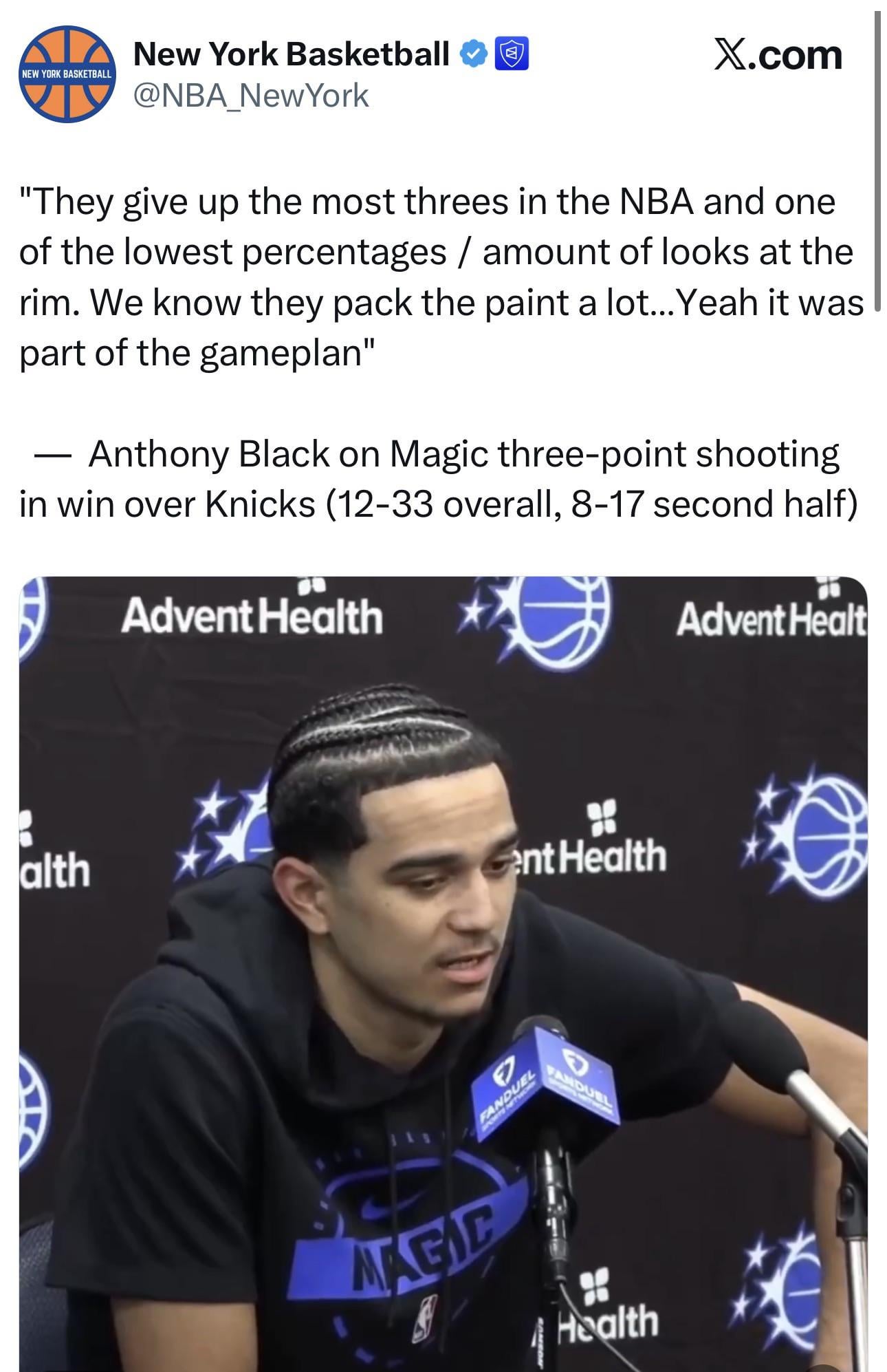 3. Dude just yapping. They arent a good 3pt shooting team so why would that be the game plan? they had ~50 point in the paint and made like two more 3s than their average.