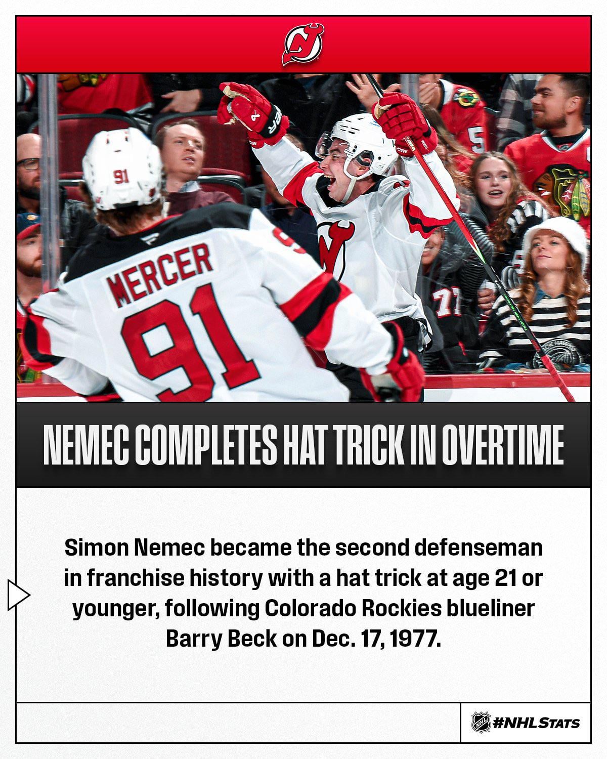 Every defensman 21yo or younger with a hattrick, last 30 years: – Simon Nemec (tonight), – Rasmus Ristolainen (2015), – P.K. Subban (2011). Hasn’t happened since McDavid was a rookie.