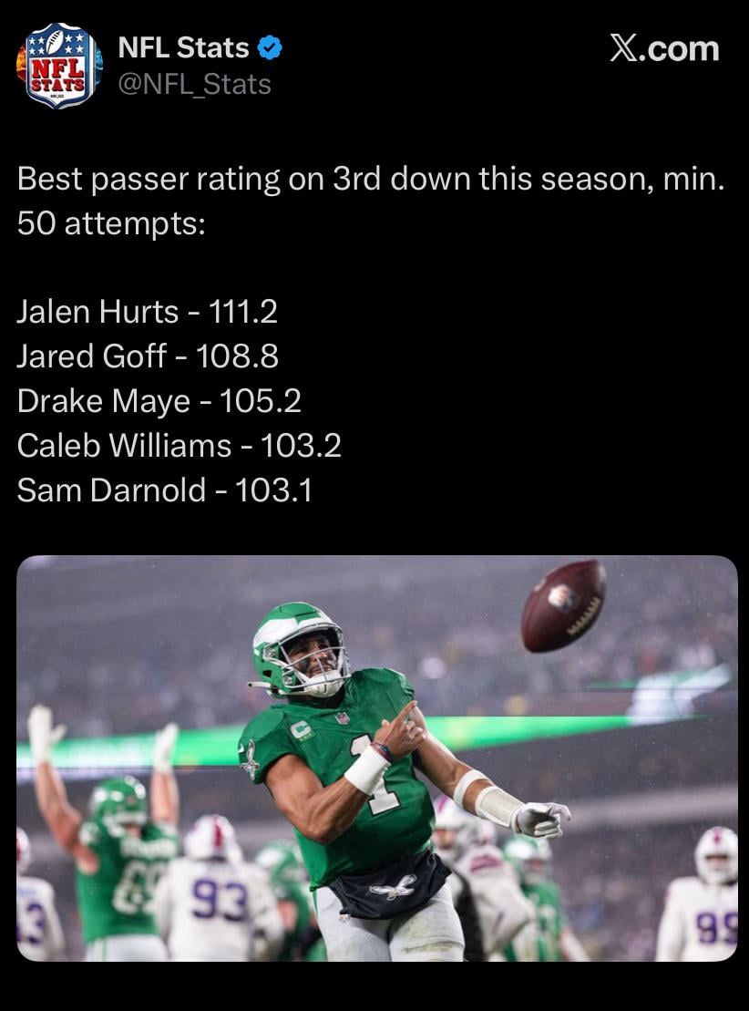 Best passer rating on 3rd down this season. #1 Jalen Hurts 111.2