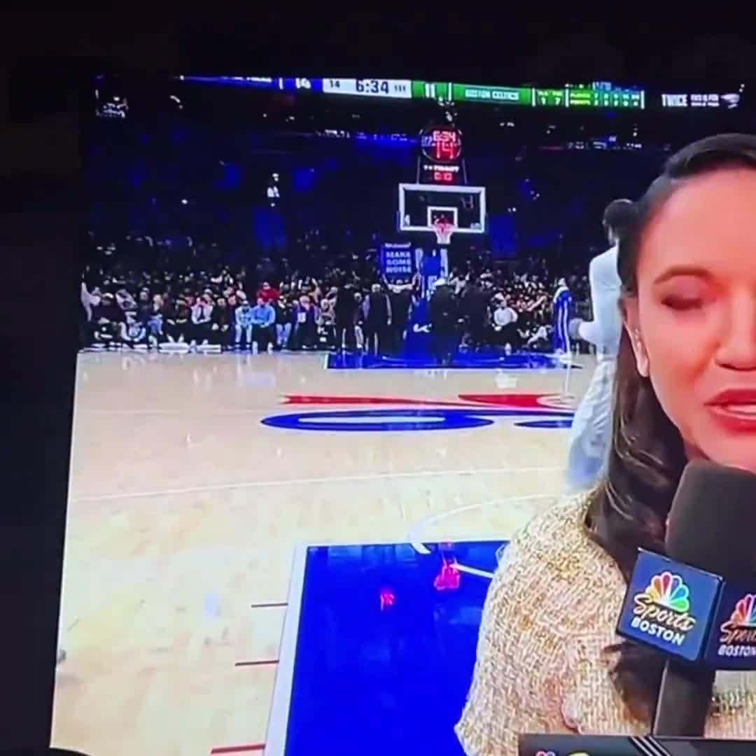 VIDEO: Sixers mascot Franklin avoids Jaylen Brown like the plague to prevent a hair mark being left on him!