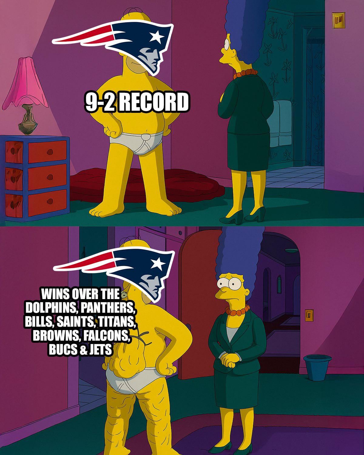 On what planet should the Bills and the Bucs be considered Homer’s back fat? Those are good wins.