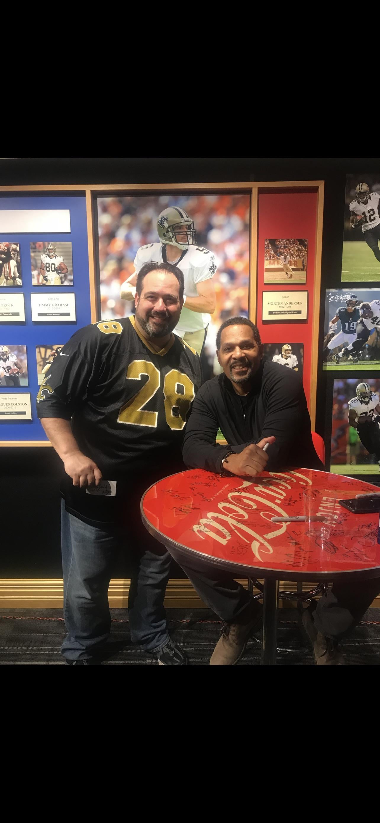 Hello! My dad passed away last year and I was going through some photos of him and couldn’t figure out who’s he’s standing next to. For context this was at a Saints game in 2018 against the Rams on 11/4. My dad is the one on the left. Can my fellow Who Dats help me figure this out? Thanks!