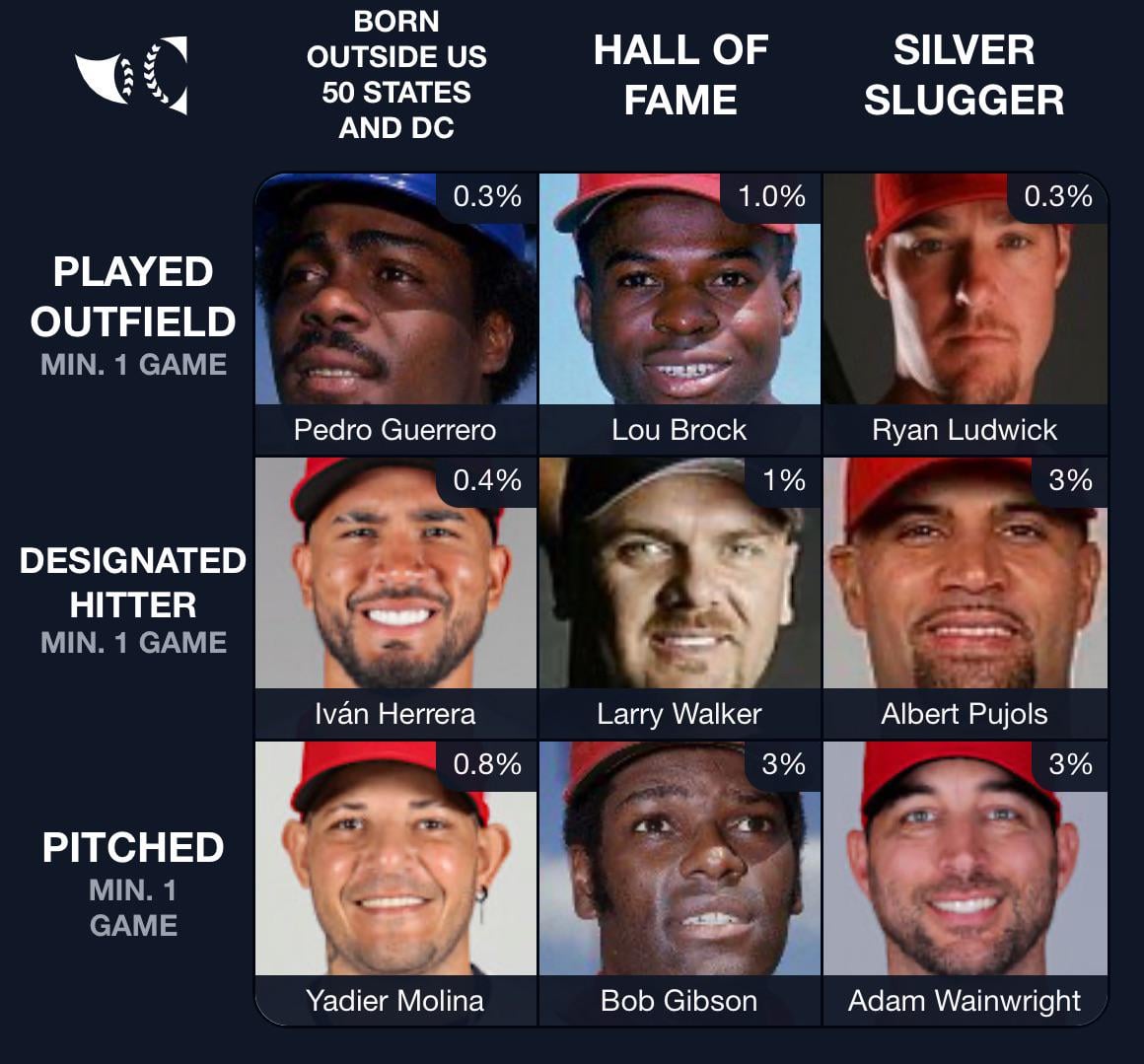 I started by trying to use only guys wearing Cardinals hats in their Grid photo, but forgot Sutter was wearing a Cubs hat. After that I decided I couldn’t pass up an opportunity to use Cardinal Legend Edwin Jackson.