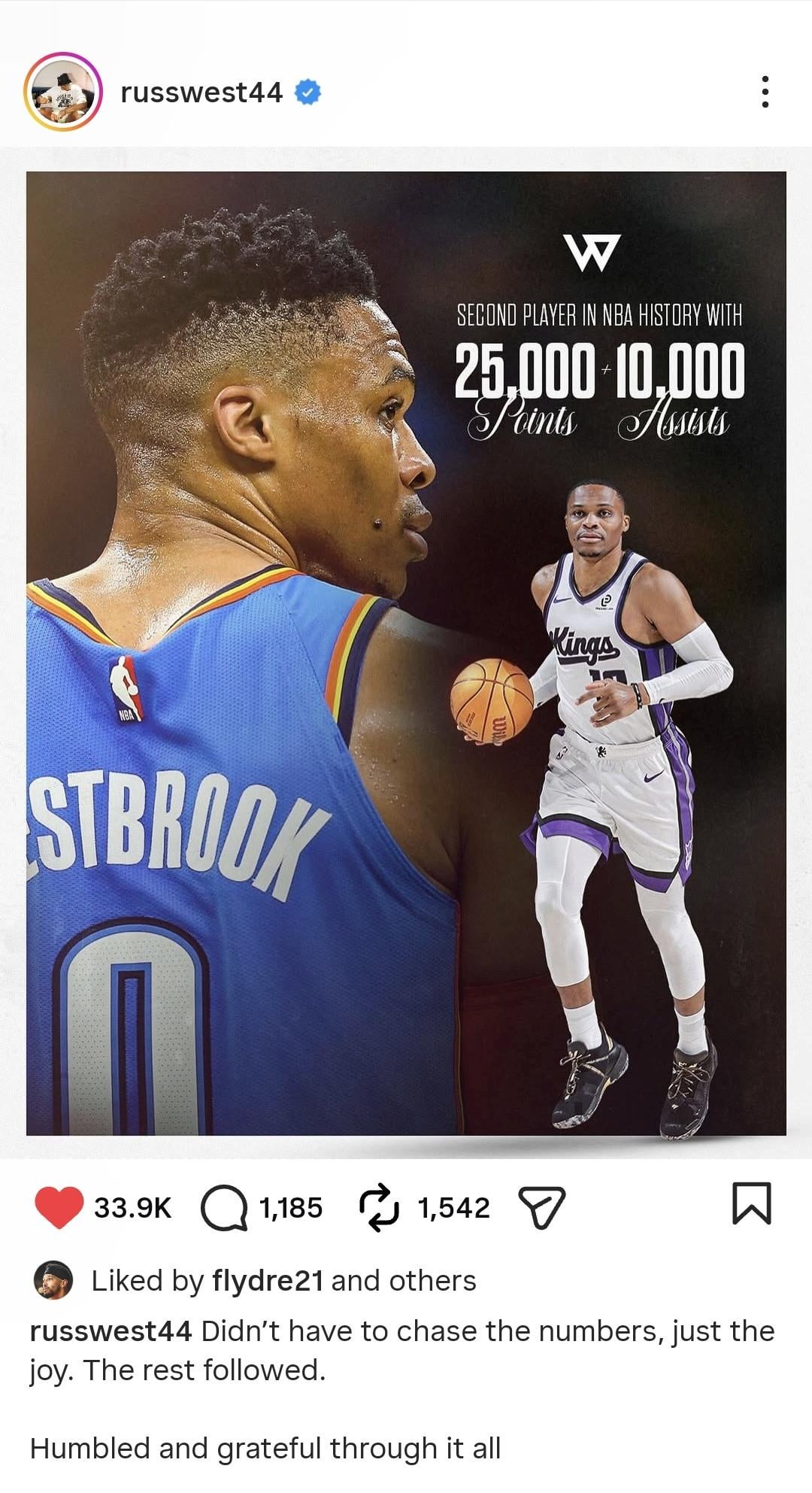 Russ posts himself in a Thunder jersey to celebrate this amazing milestone. Always showing OKC love.