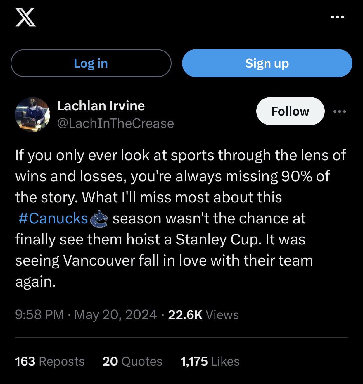 I understand that this tweet is from last year. But you have to give the fans something to cheer for. San Jose, for example. Are they a playoff team this year? Probably not. But you see the growth. You see what the plan is. With Vancouver. There’s no plan. There’s no direction. Fans here want a plan. They want some sort of direction. They want a winning team. Not whatever they are doing right now.