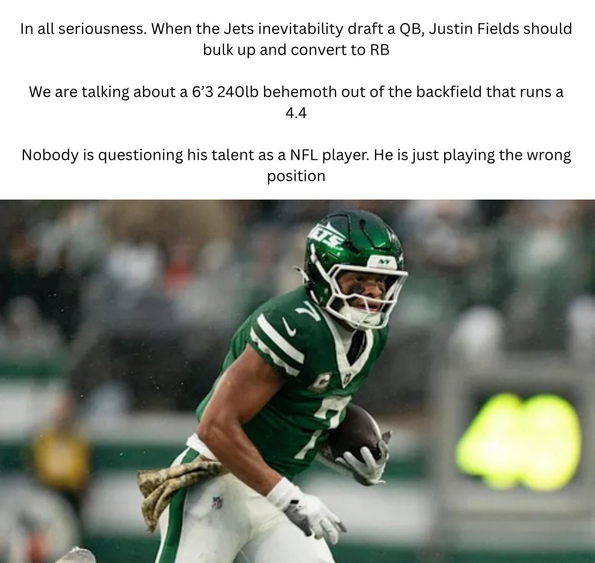 I definitely think Fields is a freak athlete. But are we seriously thinking he can hold up as a pass blocker in the back field? No chance. He needs to become a gadget guy/wildcat QB.