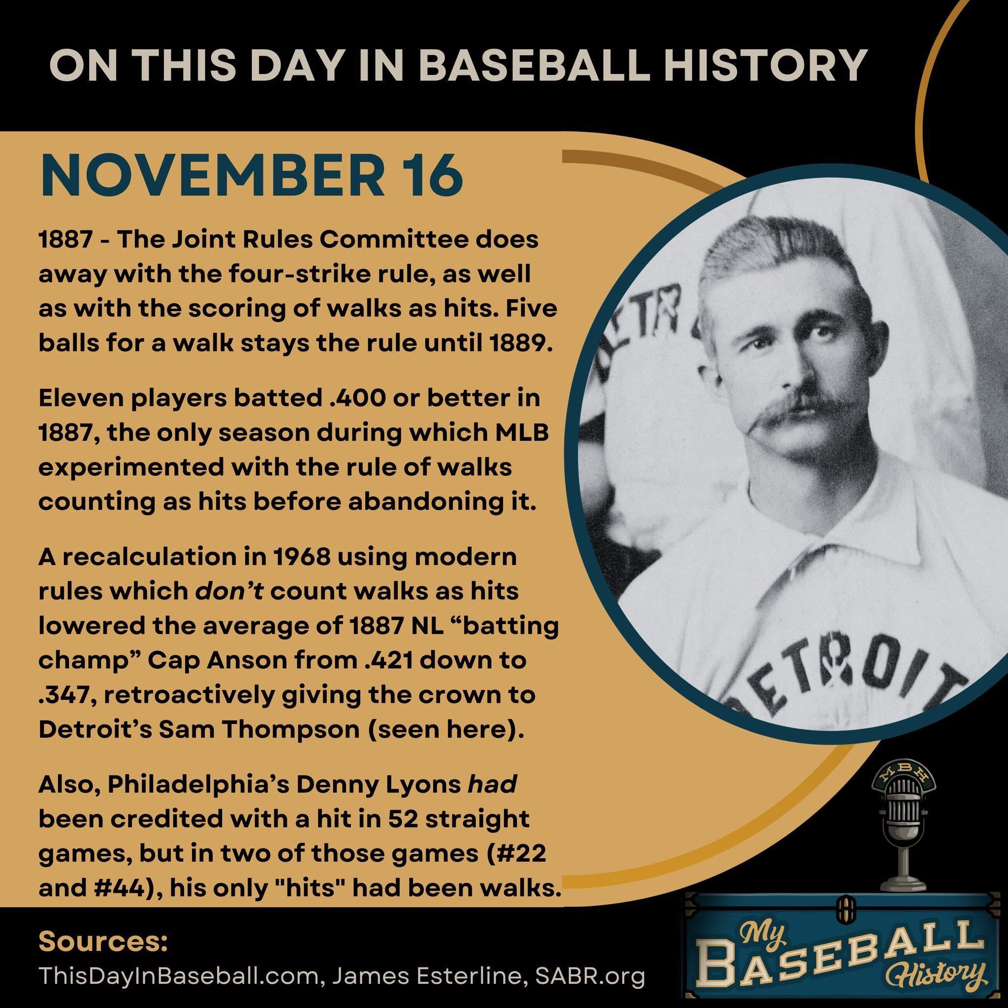 On This Day in Baseball History – November 16 1 comment Interesting that if hits back then included what we call walks, then the original batting titles were what we would call OBP titles then? Leave a ReplyYou must be logged in to post a comment.