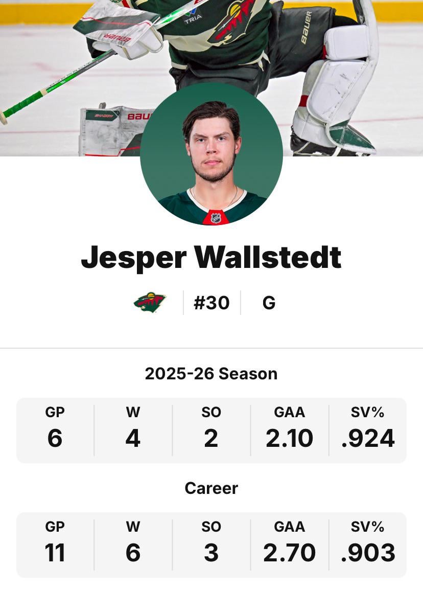 Going 4-0-2 in his first 6 starts this year, Wallstedt still hasn’t been beat in regulation
