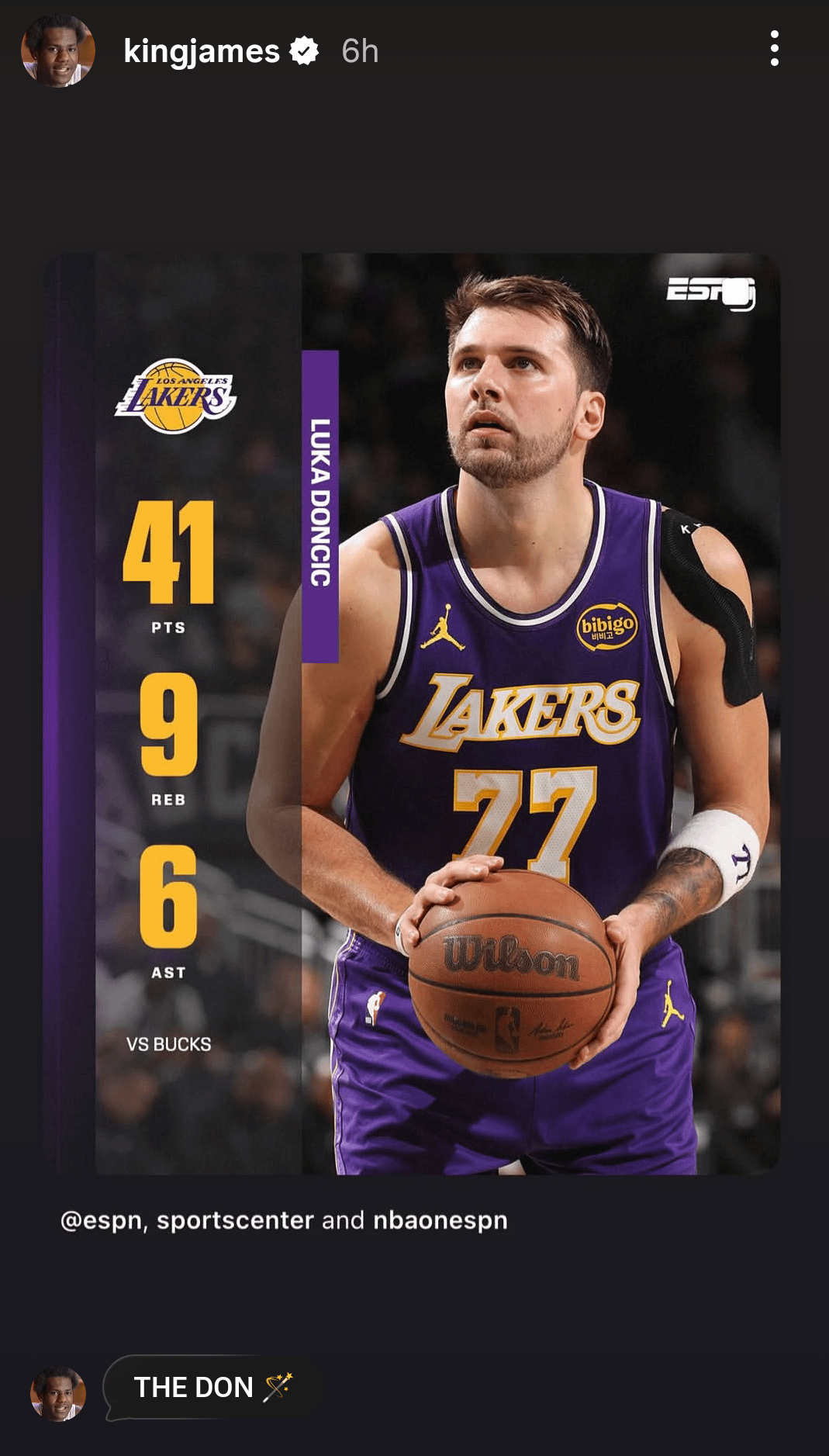 LeBron’s IG Story: “THE DONπŸͺ„”