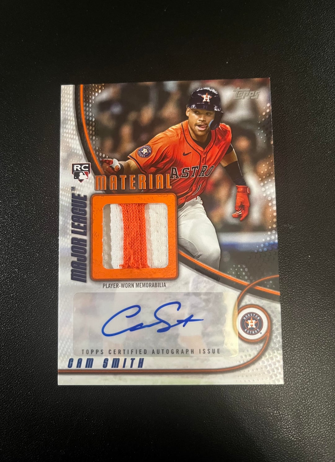 I don’t have any Astros buddies to share it with lol. It’s an autographed Orange Parallel relic card with only 25 copies in existence and is a perfect color match for the Astros’ jerseys.