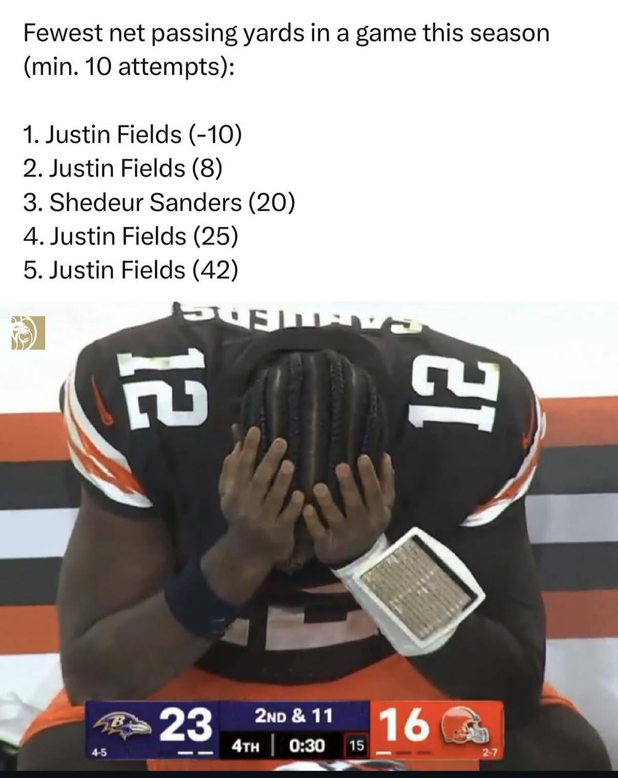 A 5th round rookie coming off the bench is still better than Fields. Lmfao