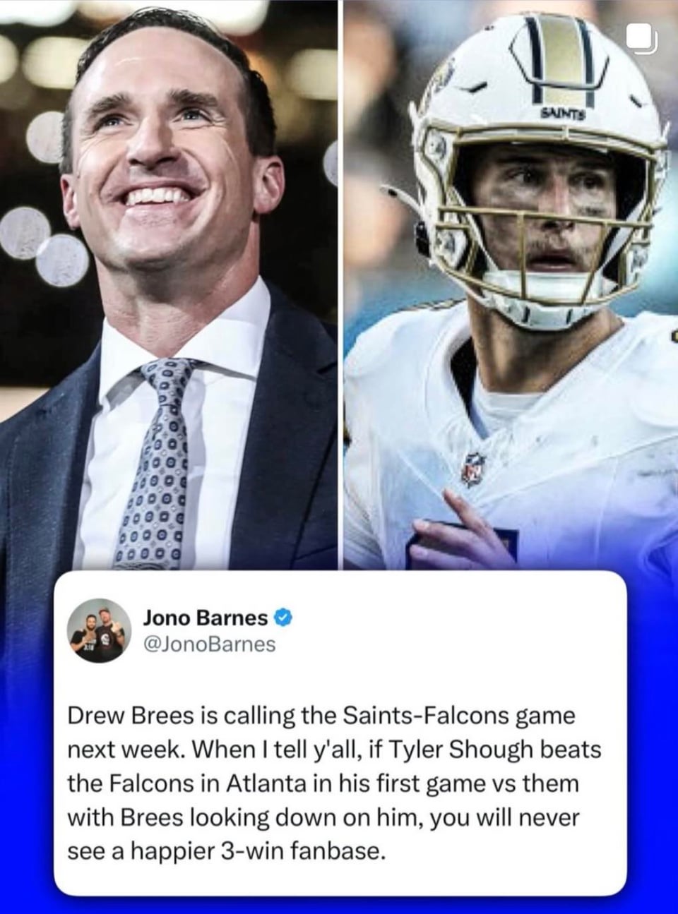 Clowning Falcons fans, Brees getting the spotlight, Shough showing promise. We are doing it right. Banks Jr. playing like a stud. What else is there to say? Eating our vegetables and getting our roots sturdy. Who dat baby.