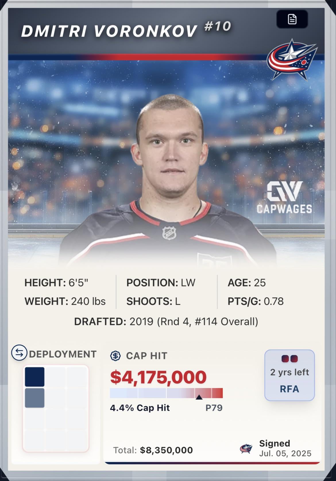 Fantilli, Voronkov, Marchenko all need 8 year deals