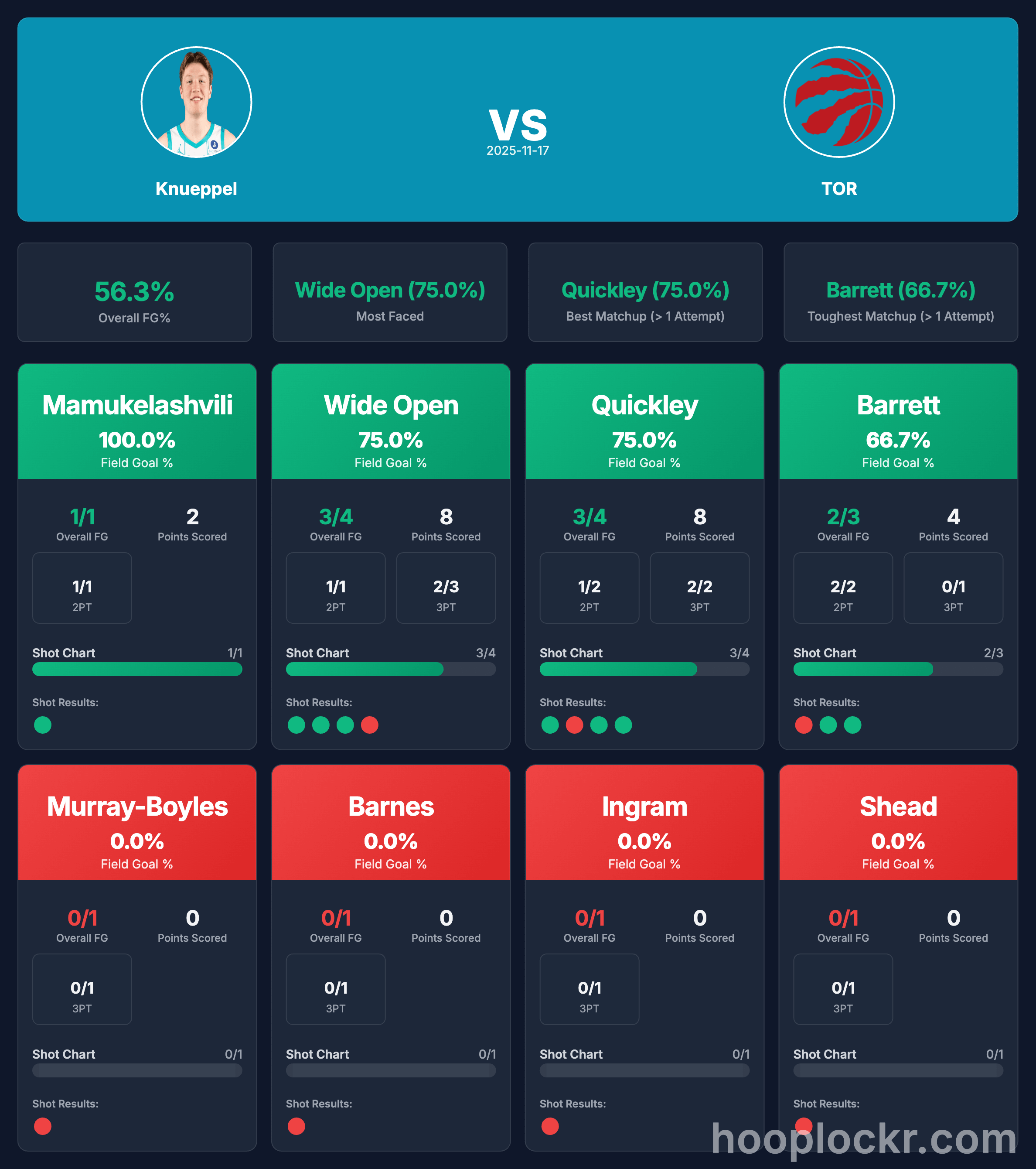 Knueppel’s shooting percentages against Raptor defenders tonight Leave a ReplyYou must be logged in to post a comment.
