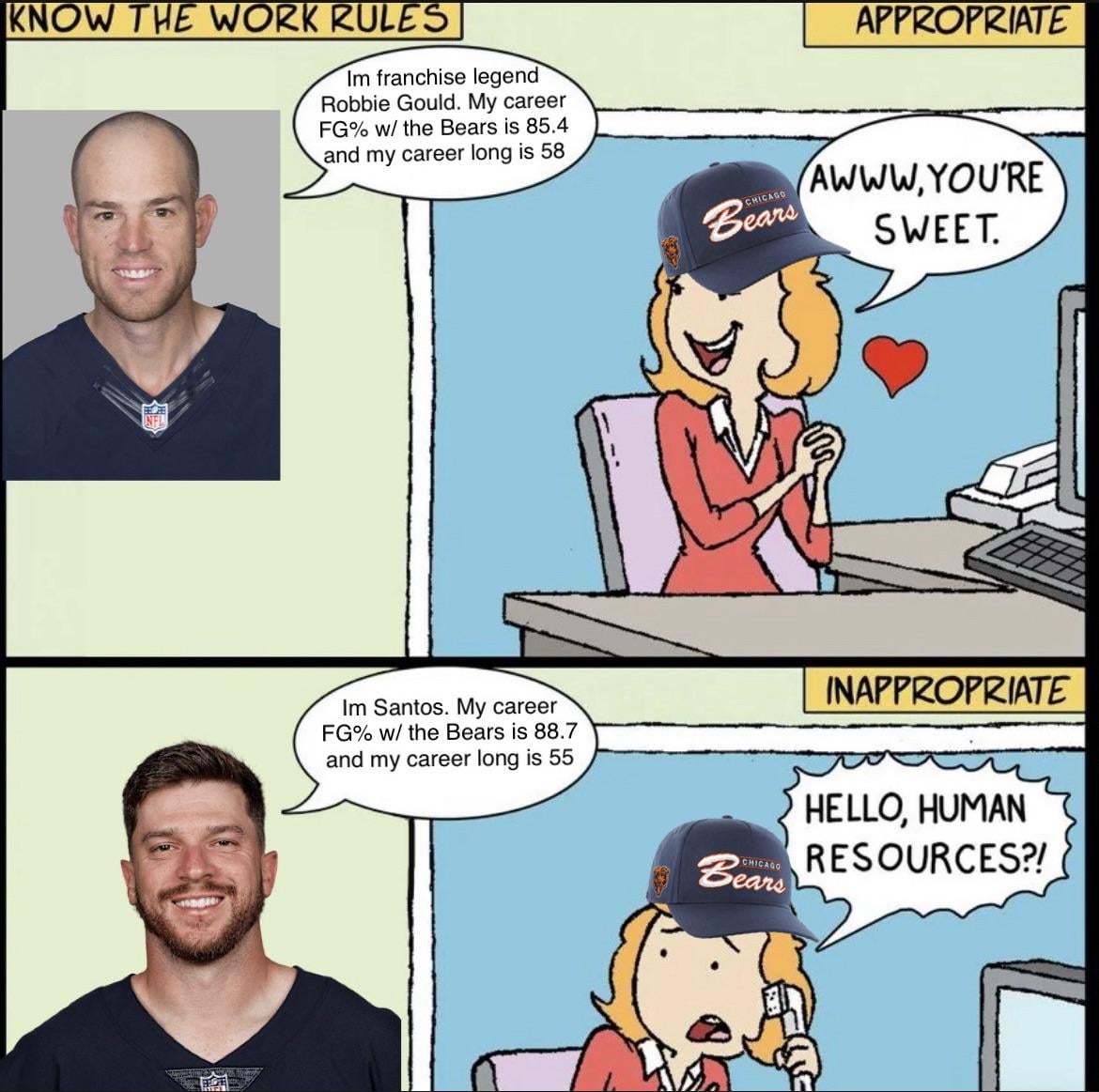 Santos is good and I’m glad we have him, but if Gould was playing in this era of juiced kicking balls he’d be even more highly regarded.