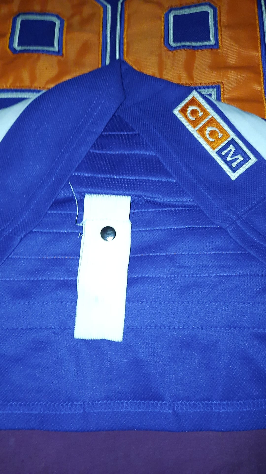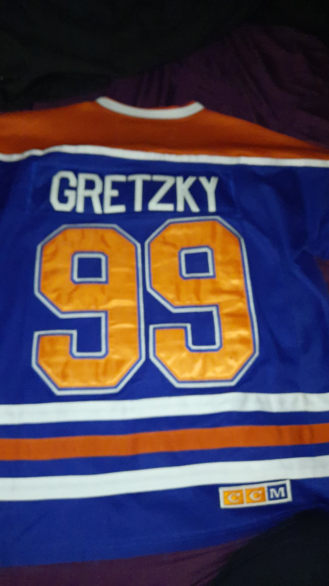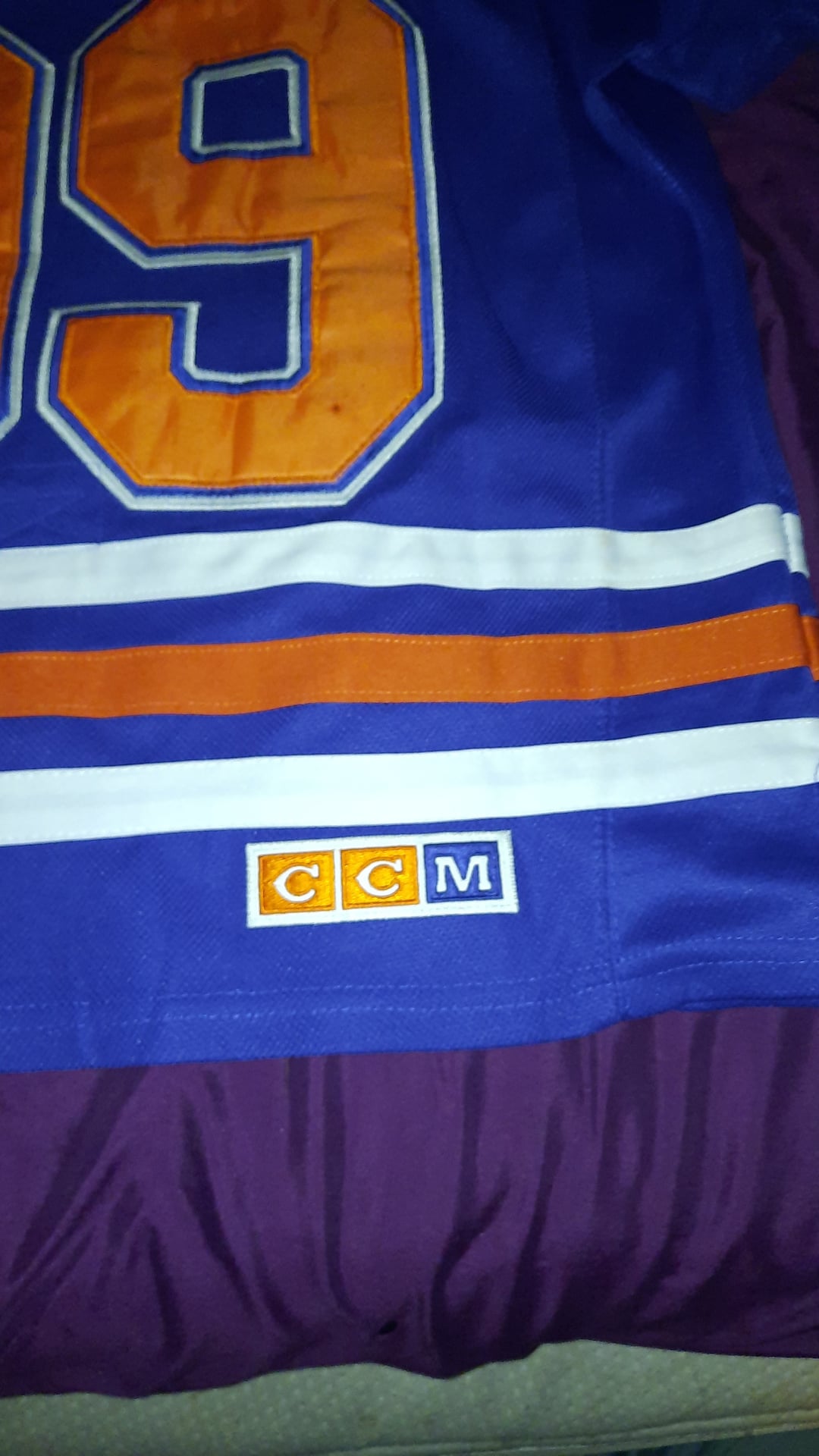 3. Gretzky was the only player with the CCM logo on both sides of the back of the jersey since he always tucked in one side. Authentic “game ready” Gretzky jerseys will always have the double CCM logo.