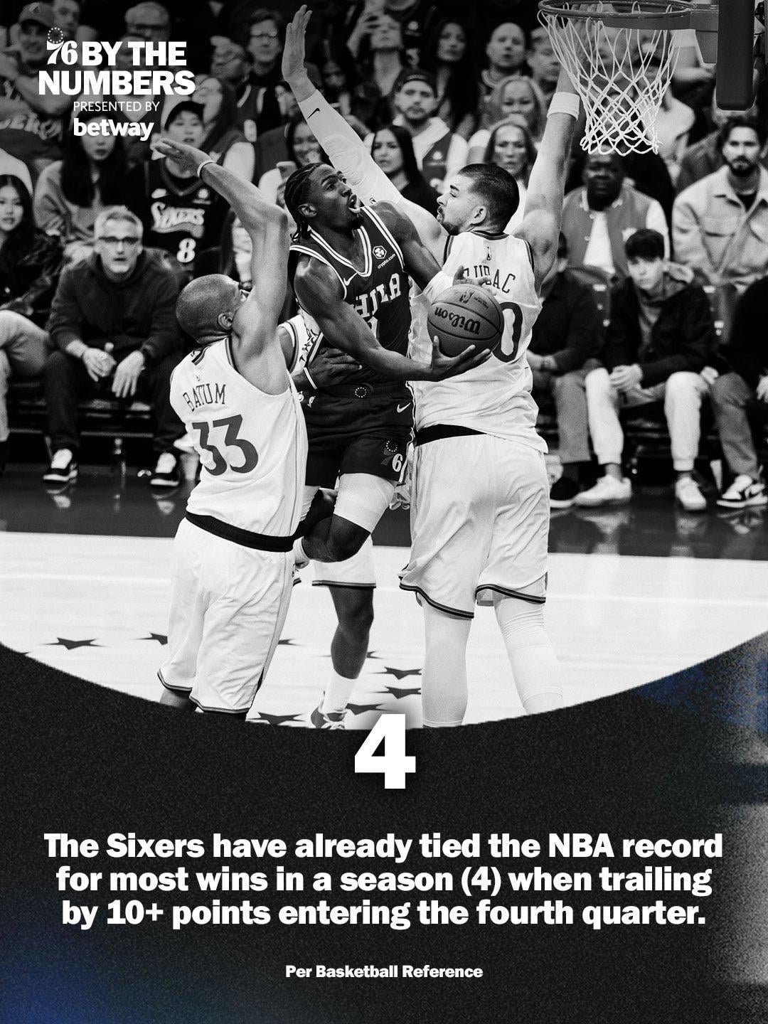 STAT: The Philadelphia 76ers have already tied NBA record for most wins in a season when trailing by 10+ points to start the fourth quarter with 4 such wins. They have done it in only 13 games.