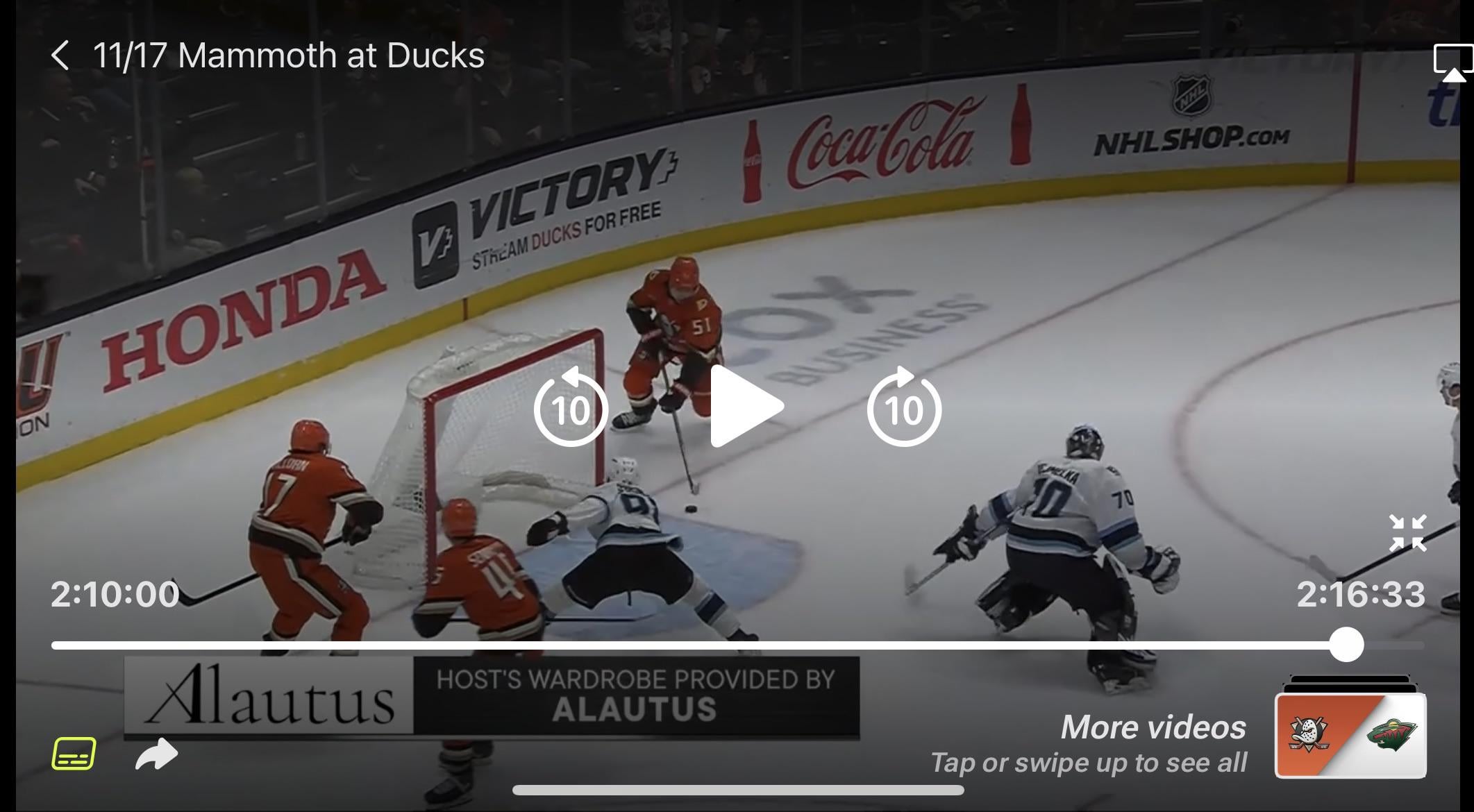 If you watch the replay of last night’s Mammoth VS Ducks game and skip to 2:10:00. John Ahler’s voice cracks when he says “He may not scOOre a better goal!” Did anyone notice this last night?