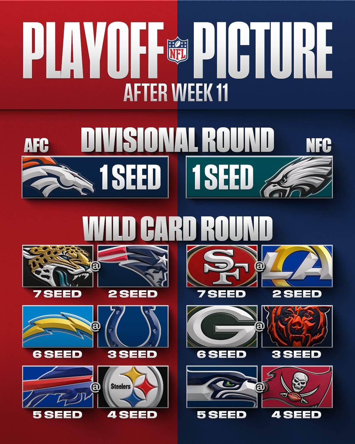 Reminder that if we beat the Cardinals this week we move to 6 because we have tie break over the Chargers and they’re on bye.