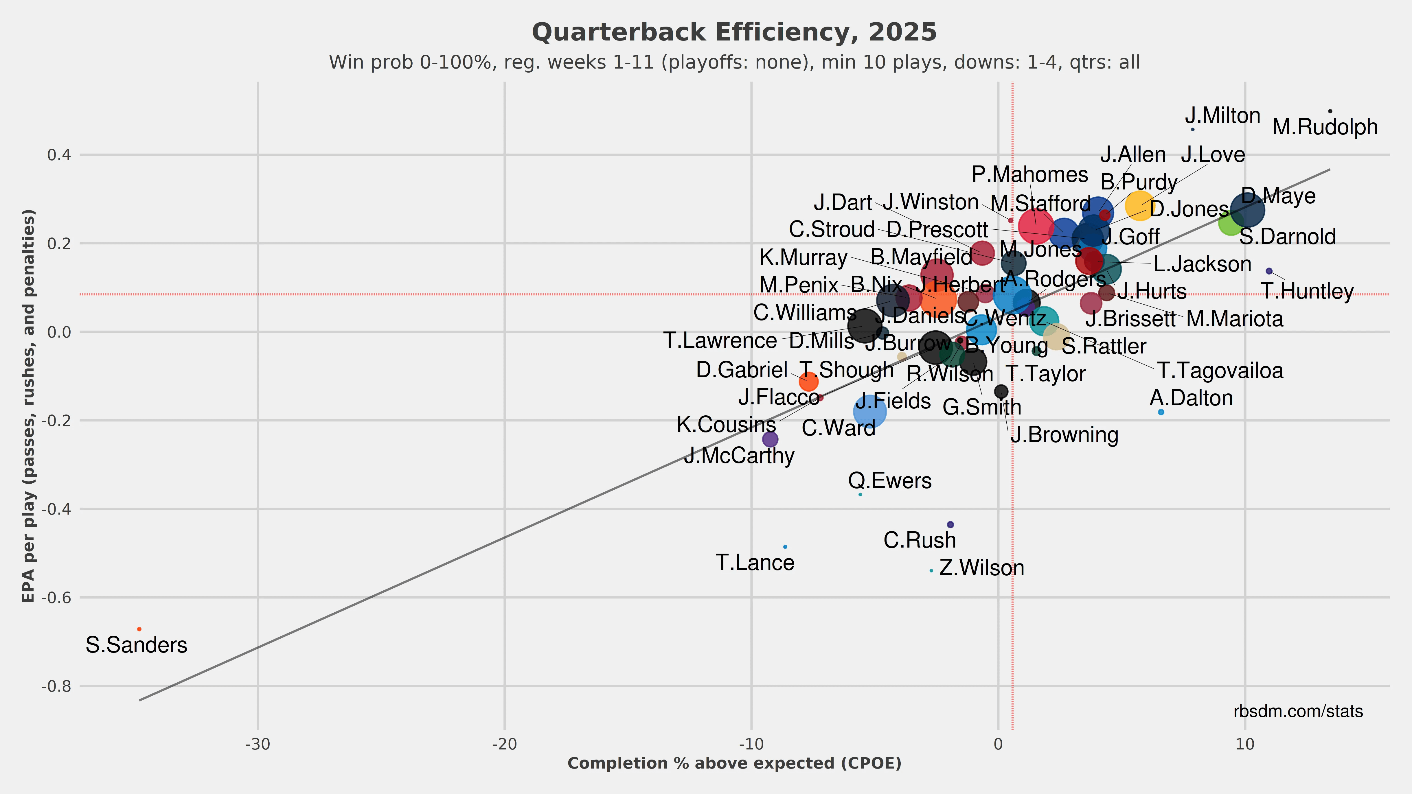 Also this graph is about as worthless as the penny nowadays. Mason Rudolph was the most efficient last week.